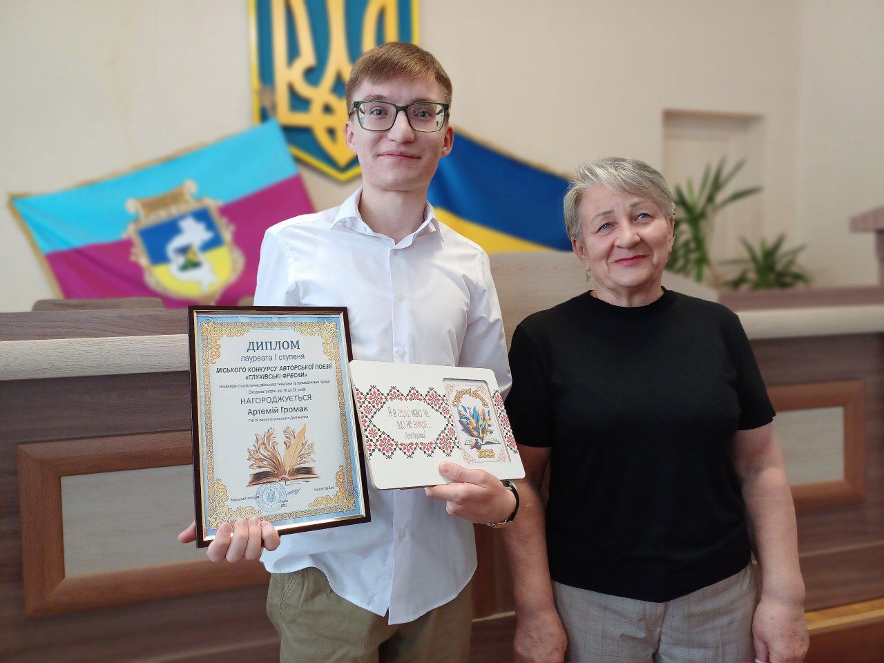 «Глухівські фрески» – це поетичний конкурс, який став платформою для відкриття нових талантів у громаді. 📃 У Глухові відбувся конкурс авторської поезії під назвою «Глухівські фрески», організований Глухівською міською радою спільно з відділом культури, освіти та КЗ «Глухівський міський палац культури». Конкурс проходив з 28 квітня по 22 травня 2025 року, ставши знаковою подією у культурному житті громади. Головна мета «Глухівські фрески» – залучення мешканців до творчості, відкриття нових поетичних імен, розвиток літературних здібностей та формування патріотизму і любові до рідного краю. Конкурс не мав вікових чи тематичних обмежень, дозволяючи кожному поділитися власними віршами. Твори, представлені на «Глухівські фрески», вражали своєю щирістю, глибиною та розмаїттям. 13 червня відбулося нагородження переможців конкурсу «Глухівські фрески». Через безпекову ситуацію захід пройшов у скороченому форматі, але буде продовжений поетапно. За результатами голосування журі, дипломи лауреатів І ступеня отримали: 🔸 Артемій Громак (ГНПУ ім. О. Довженка) – у номінації «Патріотична, військова та громадянська лірика», вікова категорія: 18–24 роки. 🔸 Максим Мельник (КЗ СОР Глухівський ліцей-інтернат з посиленою військово-фізичною підготовкою) – номінація: патріотична та військова тематика, вікова категорія: 10–13 років. 🔸 Юлія Вакуленко (той самий заклад) – вікова категорія: 14–17 років. 🔸 Микола Гурець – педагог, поет, краєзнавець, член Сумського обласного літературного об’єднання «Слобожанщина», вікова категорія: 24+. 🔸 Вадим Тютюнников (ЗОШ І–ІІІ ст. №2) – переможець у номінації «Громадянська лірика», вікова категорія: 7–9 років. 🔸 Анна Овсієнко (ЗОШ №6) – лауреат у номінації «Поезія для дітей», вікова категорія: 10–13 років. Гран-прі конкурсу «Глухівські фрески» здобула Юлія Мехедок із села Дунаєць, авторка глибоких та проникливих поезій, вікова категорія: 24+. Міський голова Надія Вайло урочисто вручила дипломи переможцям, подякувавши учасникам за їхню творчість та любов до рідного краю, побажавши натхнення та нових звершень. Конкурс «Глухівські фрески» підкреслив, що в громаді є багато талановитих людей, чия поезія відображає надію, любов і силу українського духу. «Глухівські фрески» – це важлива подія для розвитку культури та підтримки талантів у громаді.