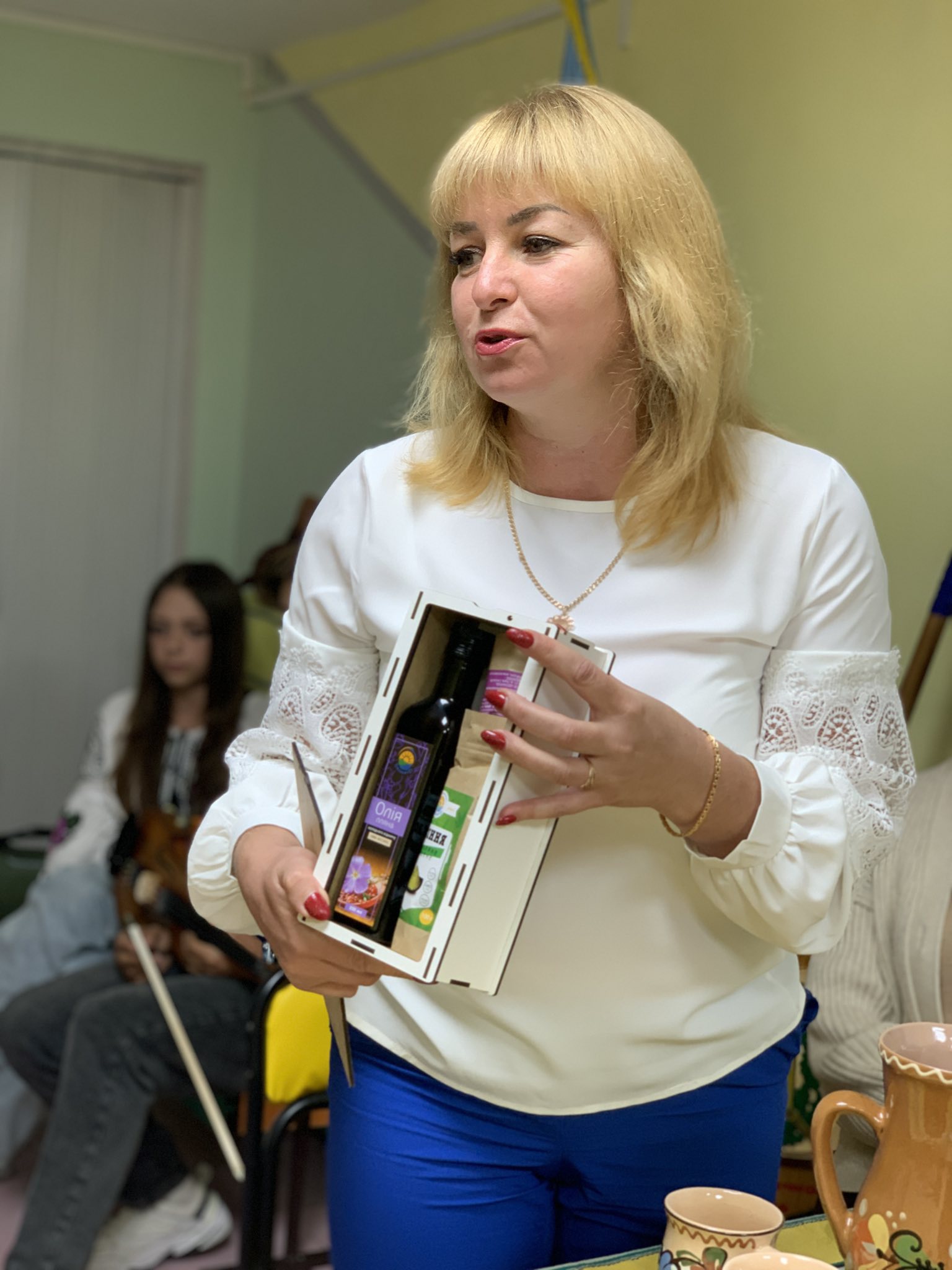 Особливо зворушливим моментом зустрічі стали виступи талановитих вихованців закладу. Діти щиро читали патріотичні вірші, виконували натхненні пісні та дарували присутнім слова підтримки й непохитної віри у світле майбутнє України. Атмосферу свята доповнив чудовий музичний подарунок від випускника ліцею Дмитра Гагіна, який майстерно виконав мелодію на скрипці, приємно вразивши всіх учасників зустрічі своєю грою.