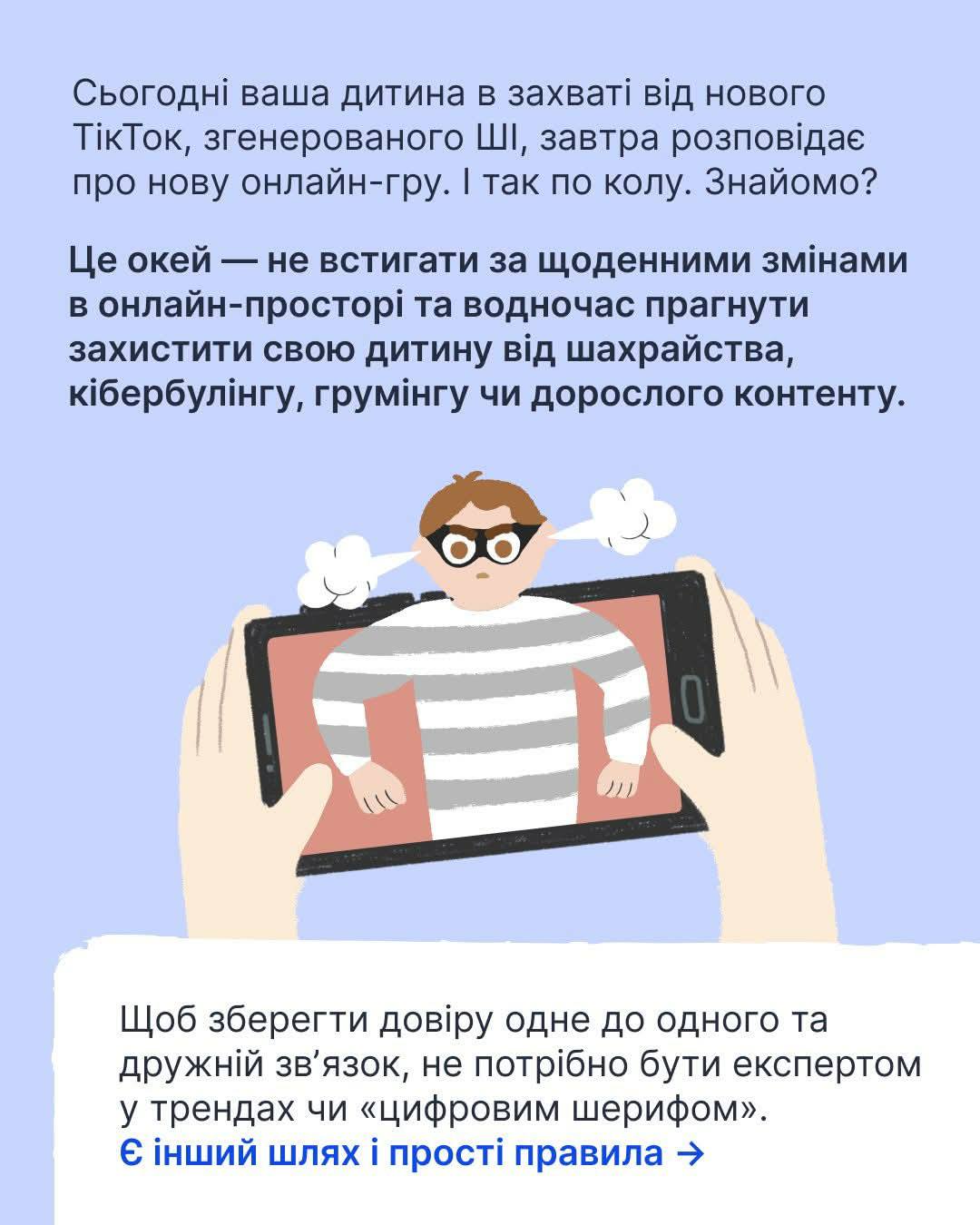 Але якщо не забороняти, а пояснювати, розмова стає ефективнішою. І замість «я сказав/-ла — значить, так треба» з’являється довіра. А довіра — це теж про безпеку.