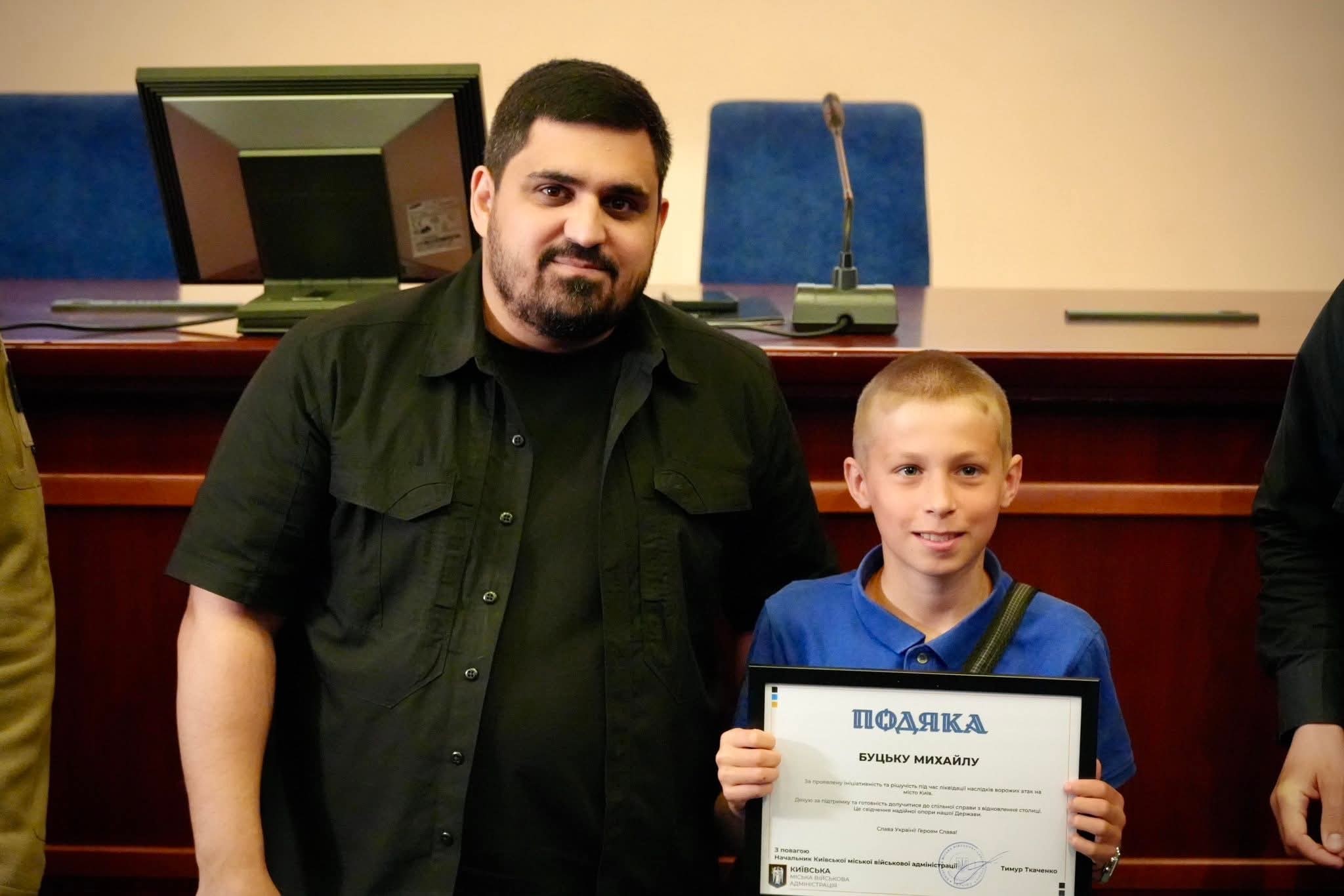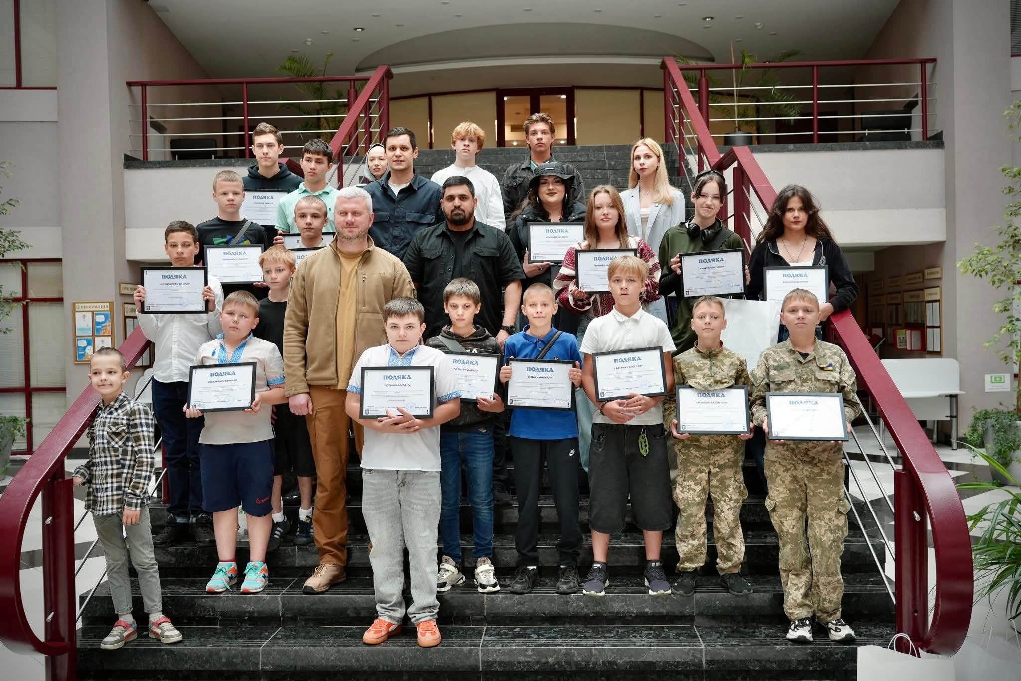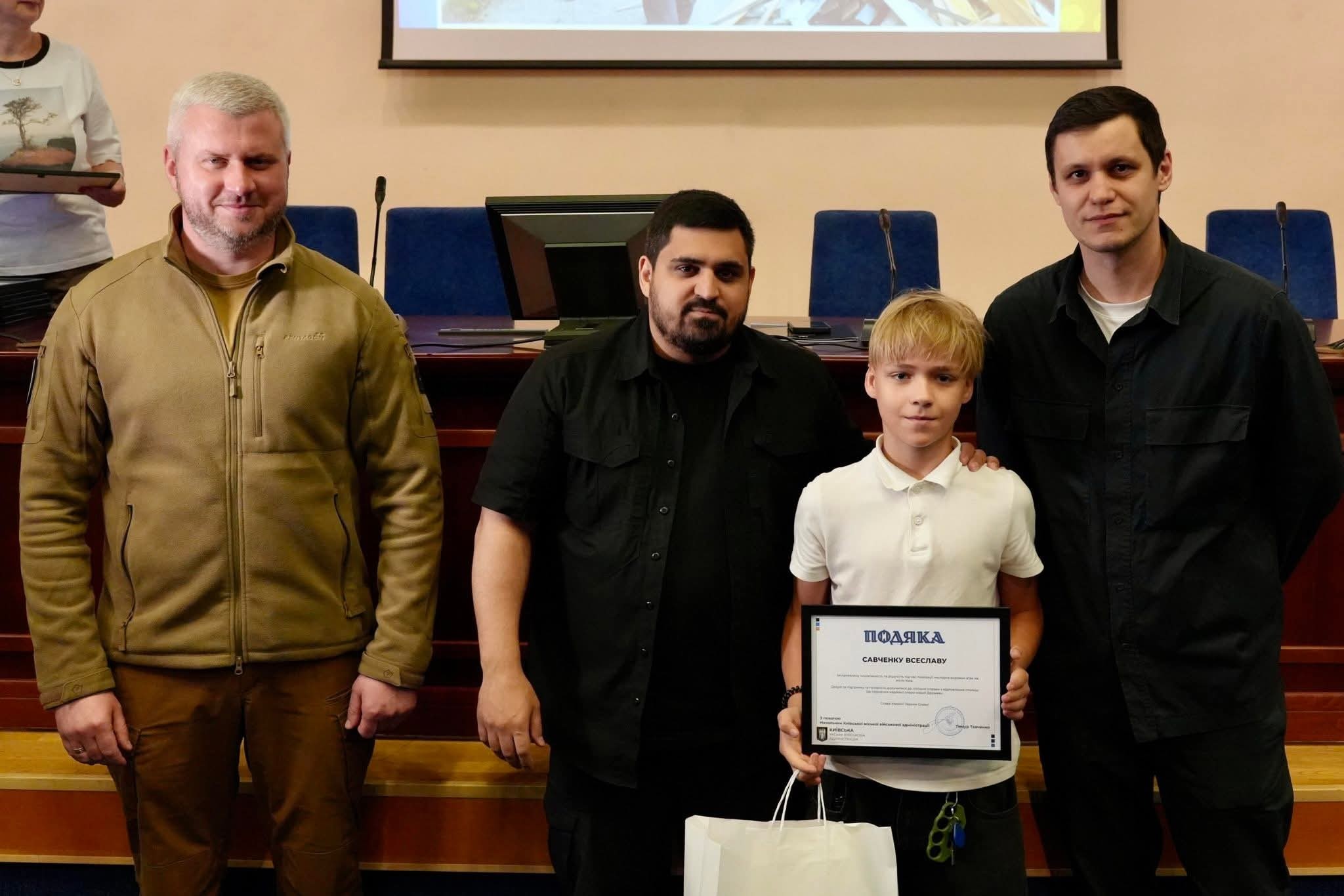 📜 Голова Солом’янська районна в місті Києві державна адміністрація Сергій Мовенко разом із начальником КМВА Тимур Ткаченко та народним депутатом Романом Грищуком вручили подяки юним мешканцям Солом’янського району, які після ворожого удару допомагали розбирати завали.