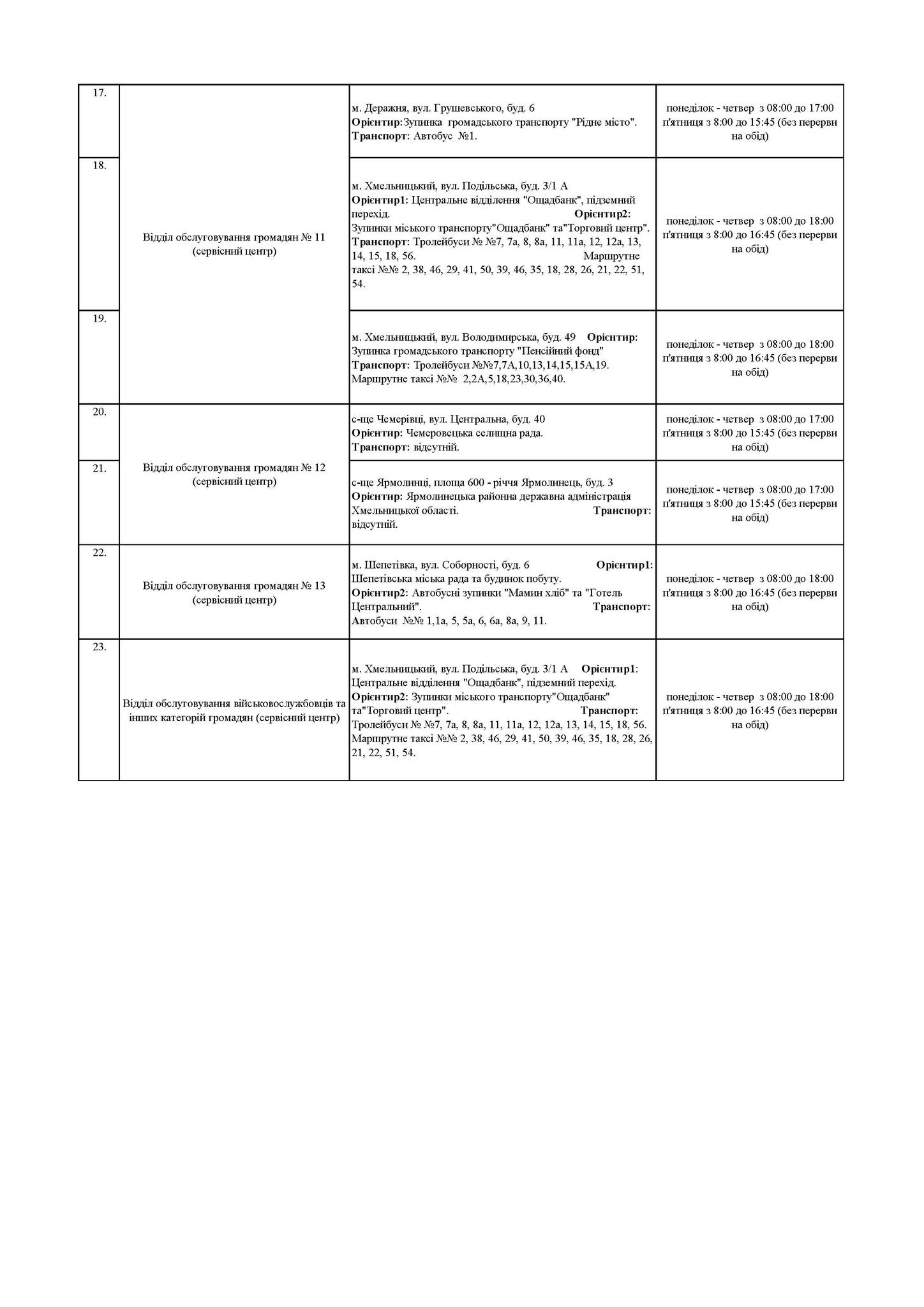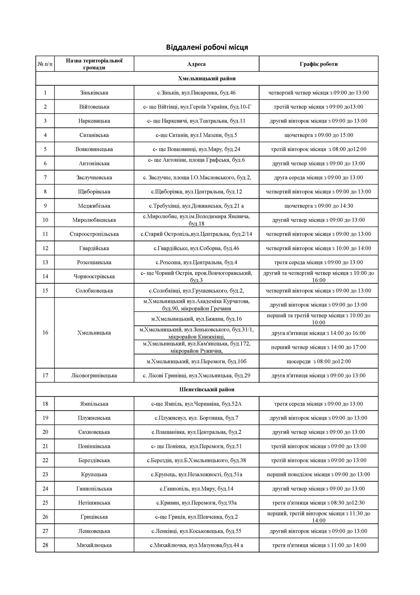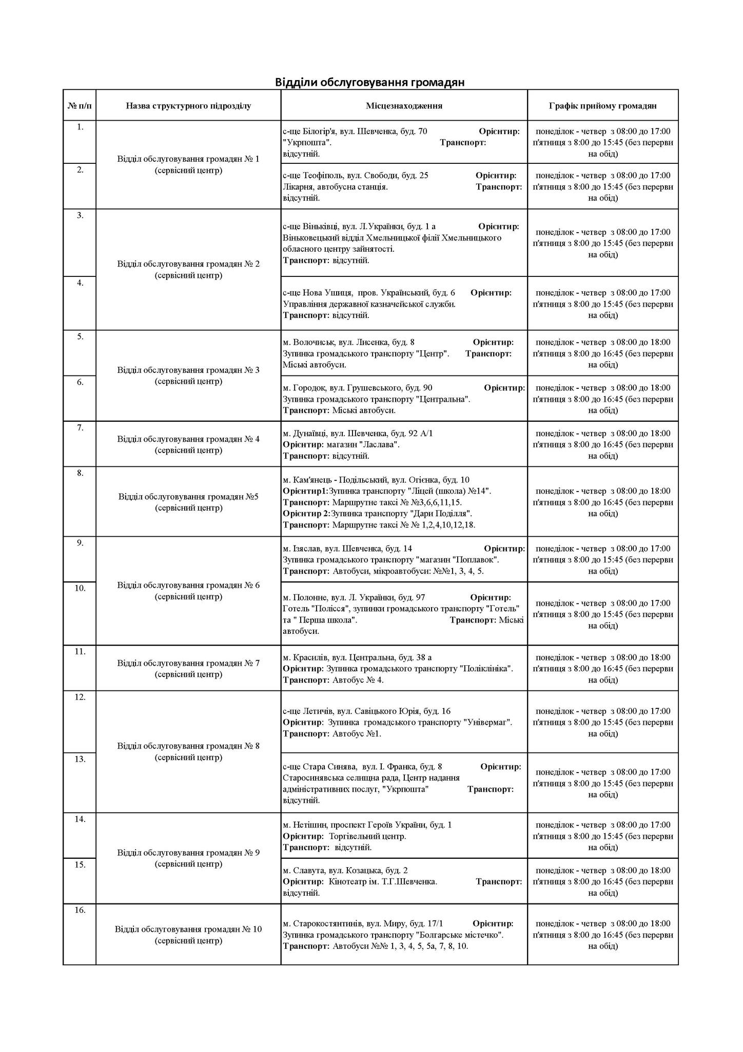Контактні телефони, адреси та графіки прийому фахівців розміщені на офіційному вебсайті Головного управління ПФУ в Хмельницькій області, а також можуть бути уточнені за телефоном «гарячої лінії».