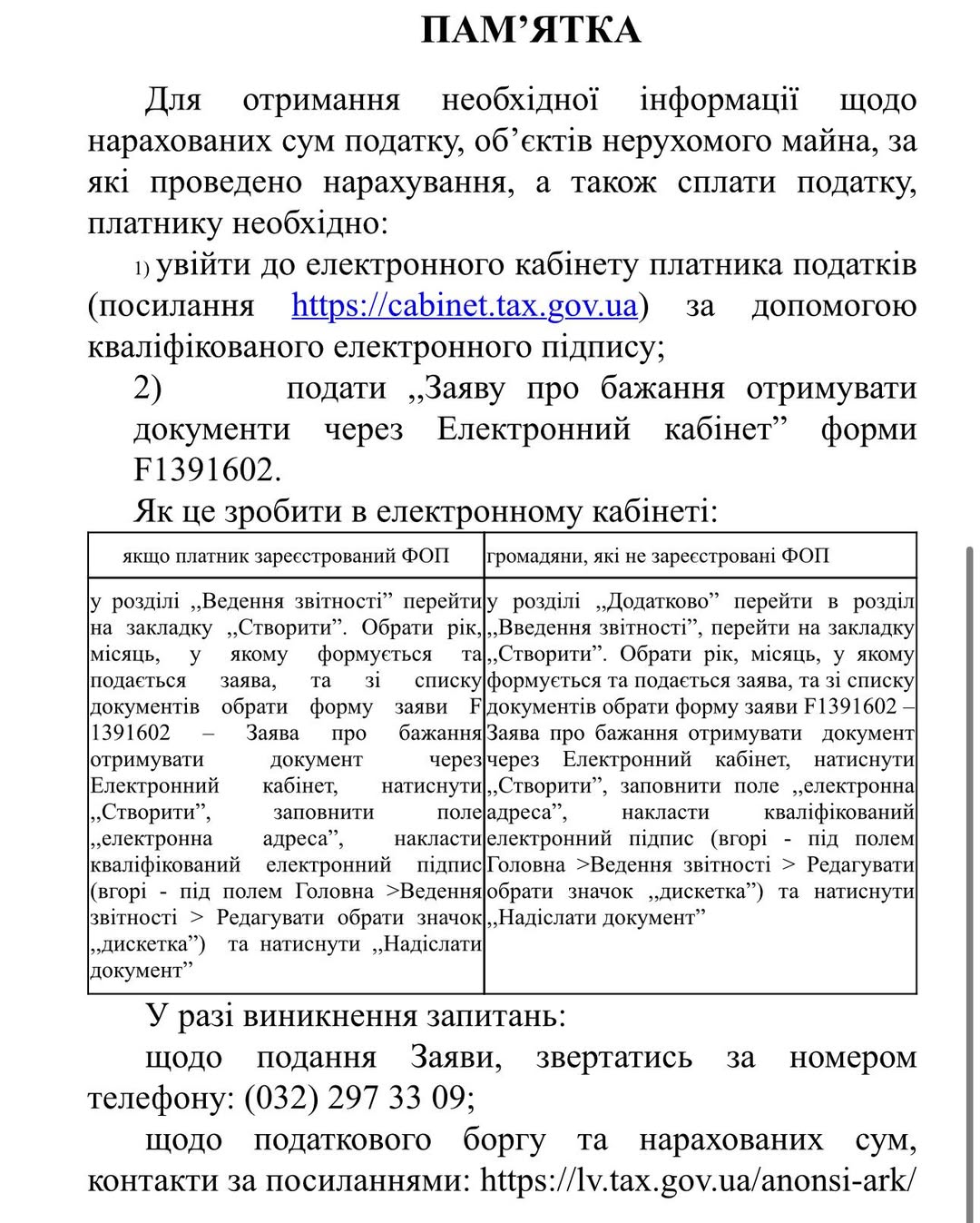 ✅Для отримання необхідної інформації щодо нарахованих сум податку, об’єктів нерухомого майна, за які проведено нарахування, а також сплати податку, платнику необхідно: