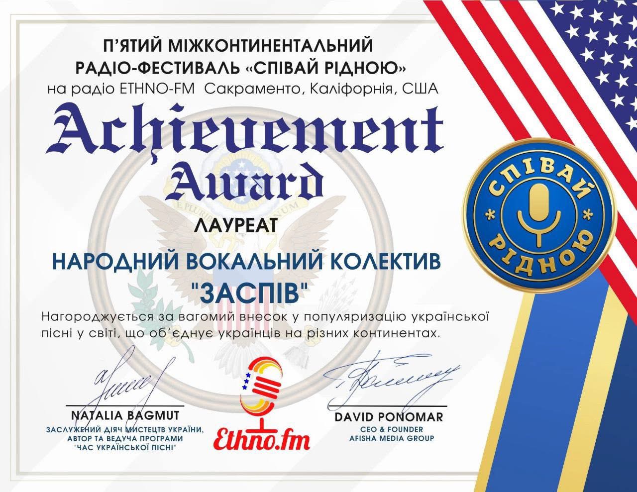 Народний вокальний колектив «Заспів» став лауреатом престижного міжнародного конкурсу, засвідчивши, що український голос звучить впевнено, об’єднуючи українців у світі навколо спільних цінностей, культури та любові до рідного слова. Їхній виступ — це справжній гімн єдності та мистецької сили.