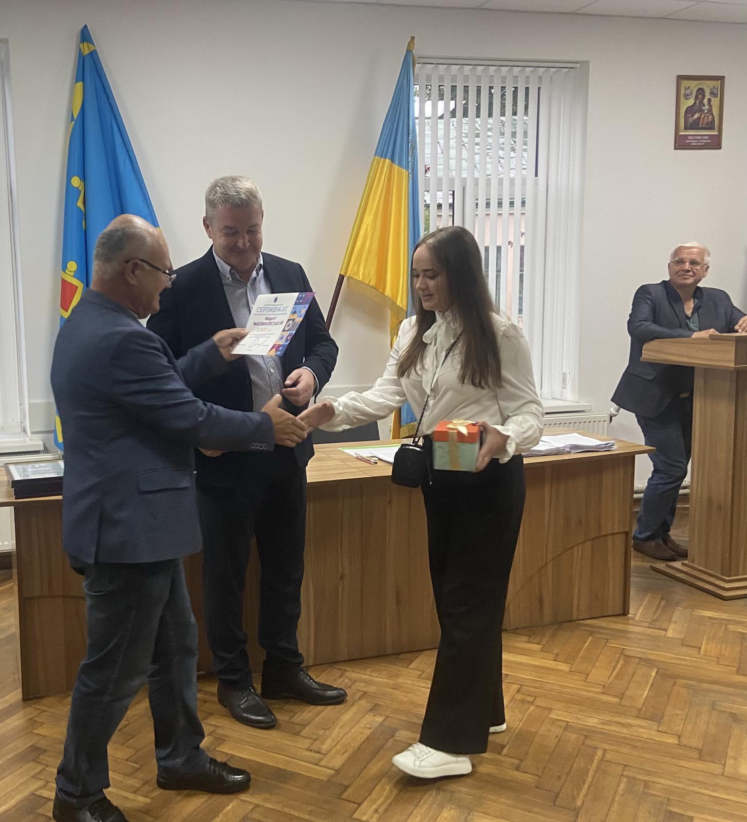 Сьогодні, під час засідання LVIII сесії Кам’янка-Бузької міської ради, міський голова Олег Омелян з секретарем ради Володимиром Буселем привітали переможців та вручили грошові сертифікати номіналом в 5 тисяч гривень.