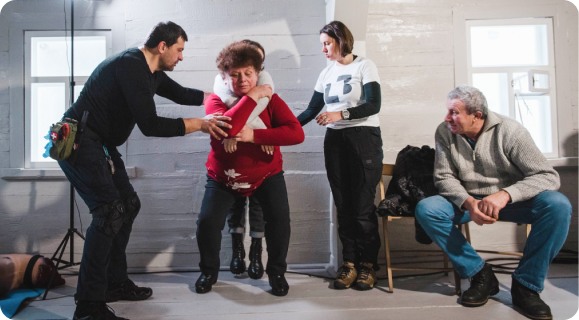 Під час тренінгу інструктори вчать правильно викликати «швидку», знайомлять з юридичними аспектами надання домедичної допомоги та з поняттям «власна фізична та біологічна безпека». 80% часу практики .
