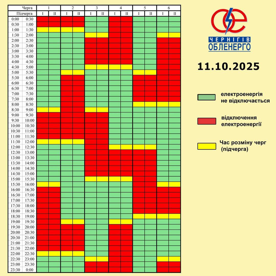 ГПВ Чернігів: Графік відключень світла 11 жовтня