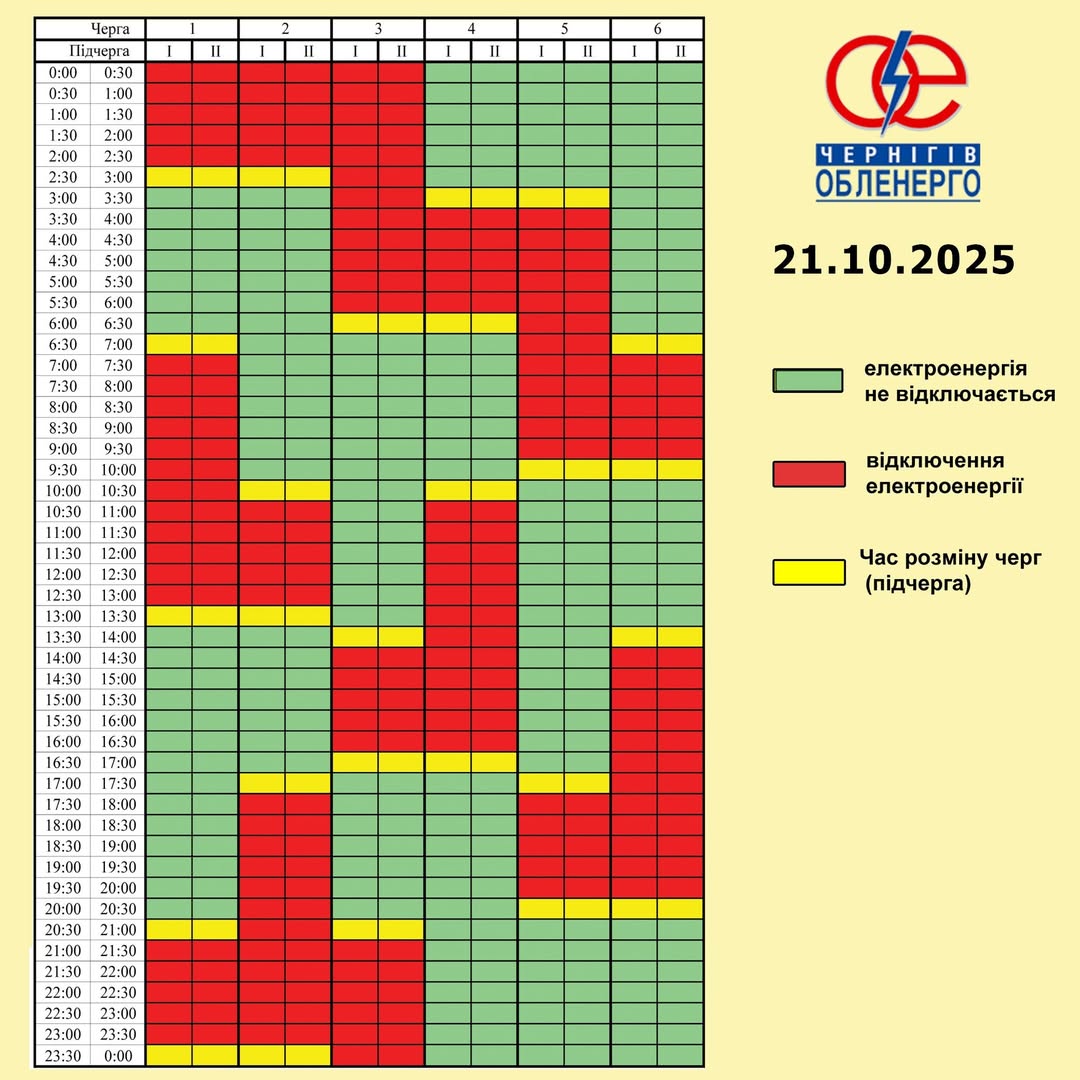 ПРОГНОЗОВАНІ ВІДКЛЮЧЕННЯ НА 21 ЖОВТНЯ: ОЗНАЙОМТЕСЯ З ГРАФІКОМ ВІДКЛЮЧЕНЬ У ЧЕРНІГОВІ