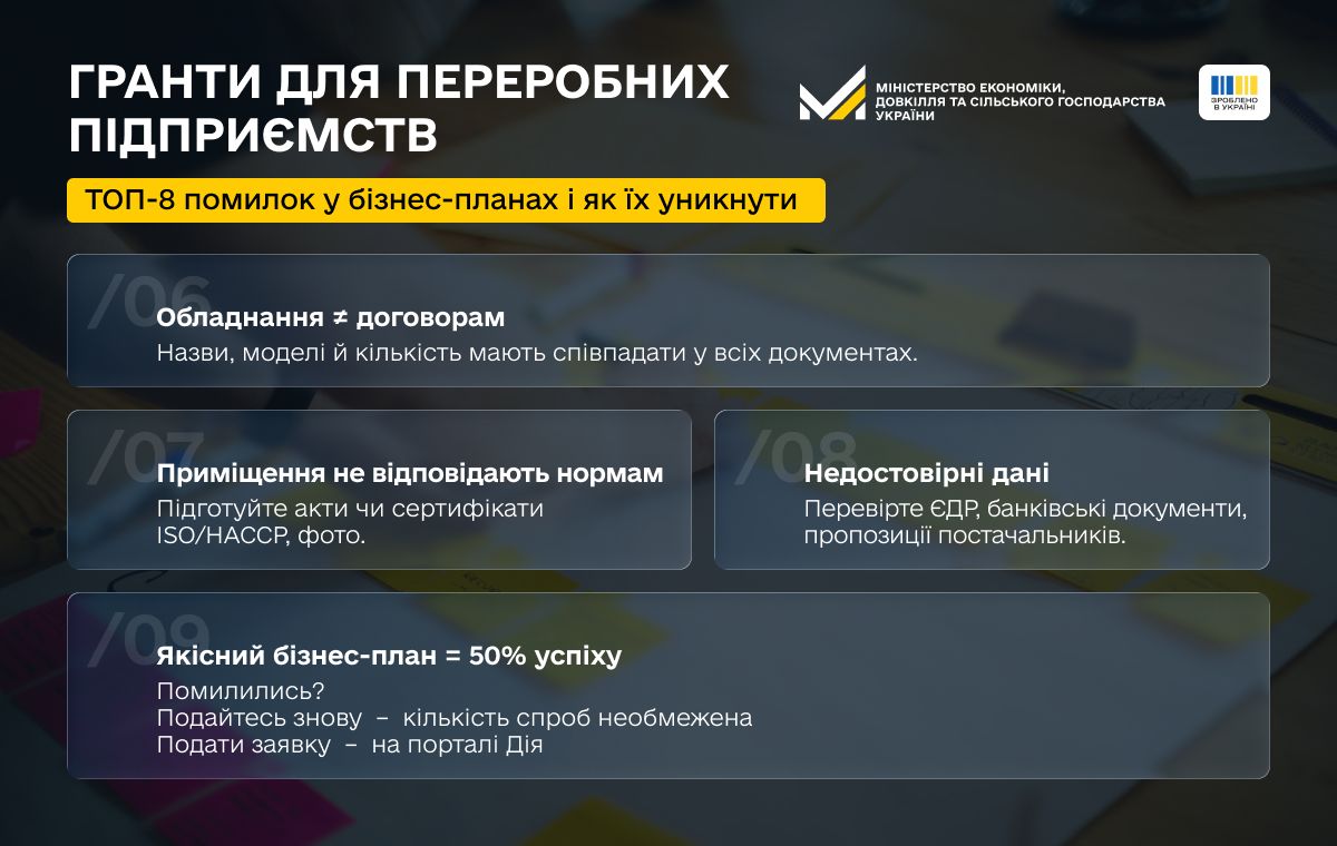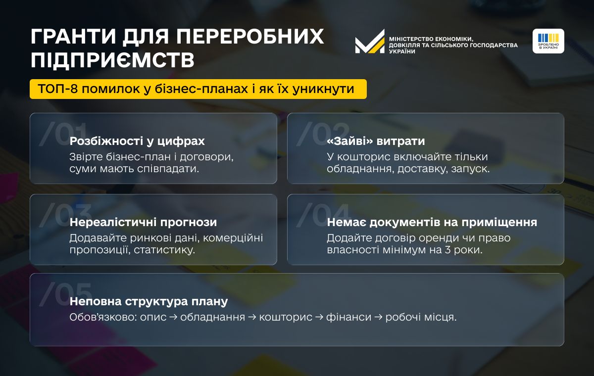 Гранти для переробних підприємств: ТОП-8 помилок у бізнес-планах