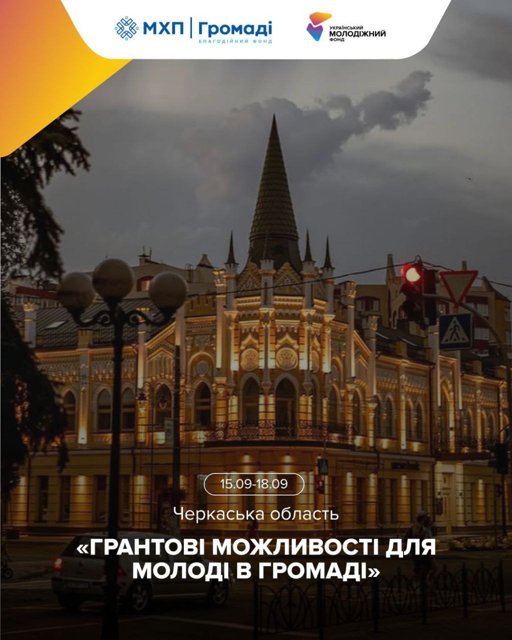 Український молодіжний фонд спільно з Благодійним фондом “МХП – Громаді” організовує серію виїзних заходів, спрямованих на залучення молоді до активної участі у житті Черкащини. Під час цих зустрічей будуть обговорюватися актуальні питання, що стосуються фінансування молодіжних ідей та їх втілення вже сьогодні, а не в невизначеному майбутньому. Долучайтеся до дискусій, де ви зможете не лише отримати інформацію, але й знайти однодумців та партнерів для реалізації ваших найсміливіших задумів.