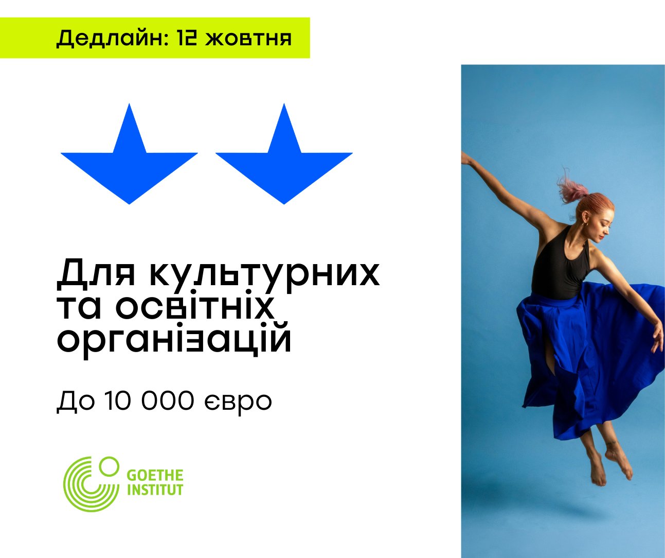 🤝 Організатором програми виступає Goethe-Institut Ukraine. Ця ініціатива реалізується в межах важливого проєкту «Стабілізаційний фонд культури й освіти», спрямованого на підтримку культурного сектору України у складний період. Підтримка мистецьких та освітніх ініціатив є ключовою для збереження та розвитку культурної ідентичності країни. Ми віримо, що грантова підтримка допоможе багатьом організаціям реалізувати свої найсміливіші ідеї та продовжити свою важливу роботу на благо суспільства.