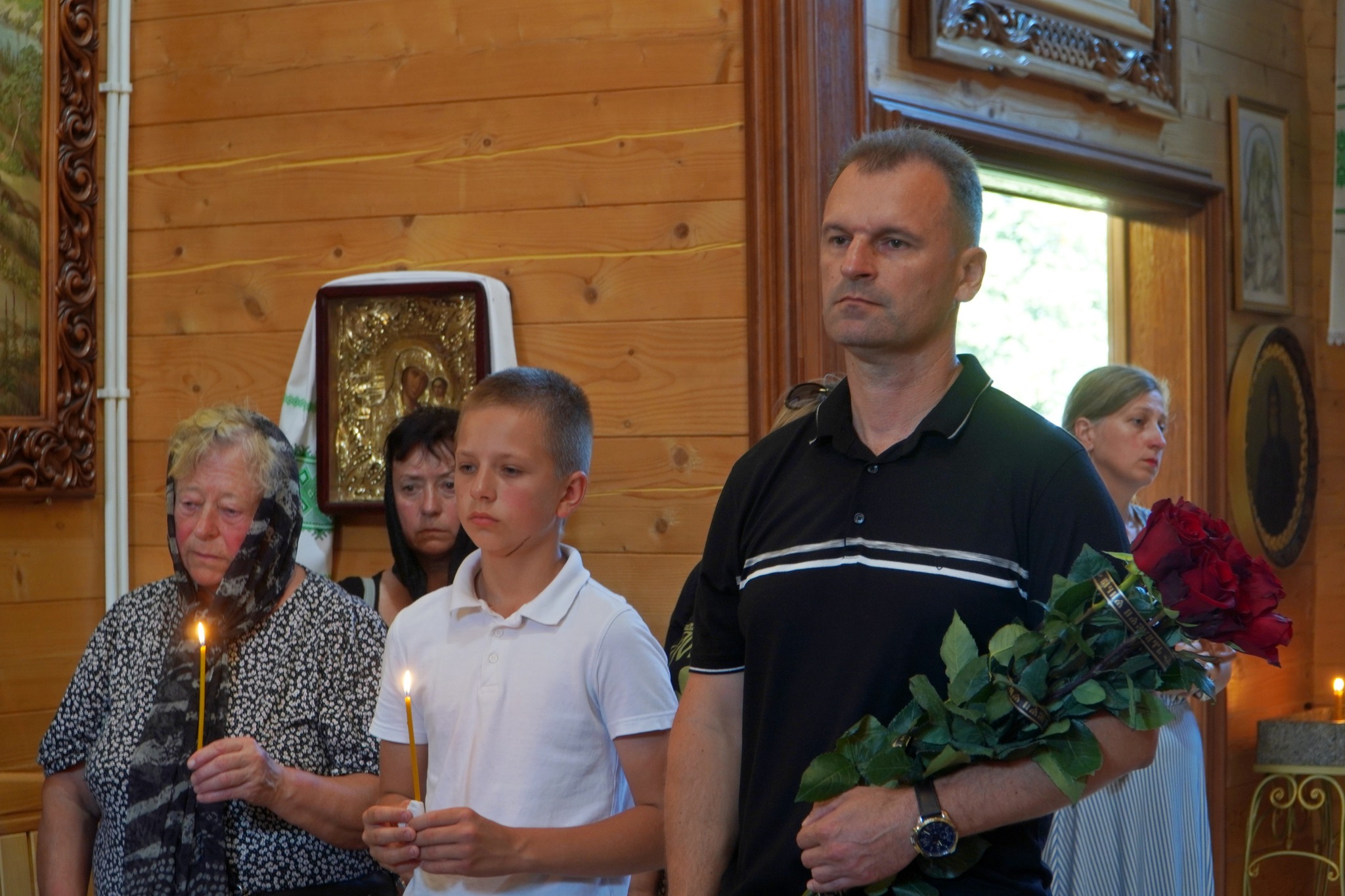 Відспівування небесного воїна відбулося у Храмі святих Віри, Надії, Любові та їх матері Софії. Попрощатися із Героєм прийшли найрідніші люди: згорьована матір, тітка, брати, сестри та племінники. Розділили непоправне горе з родиною міський голова Ігор Пальонка, близькі, побратими, друзі та небайдужі мешканці міста.
