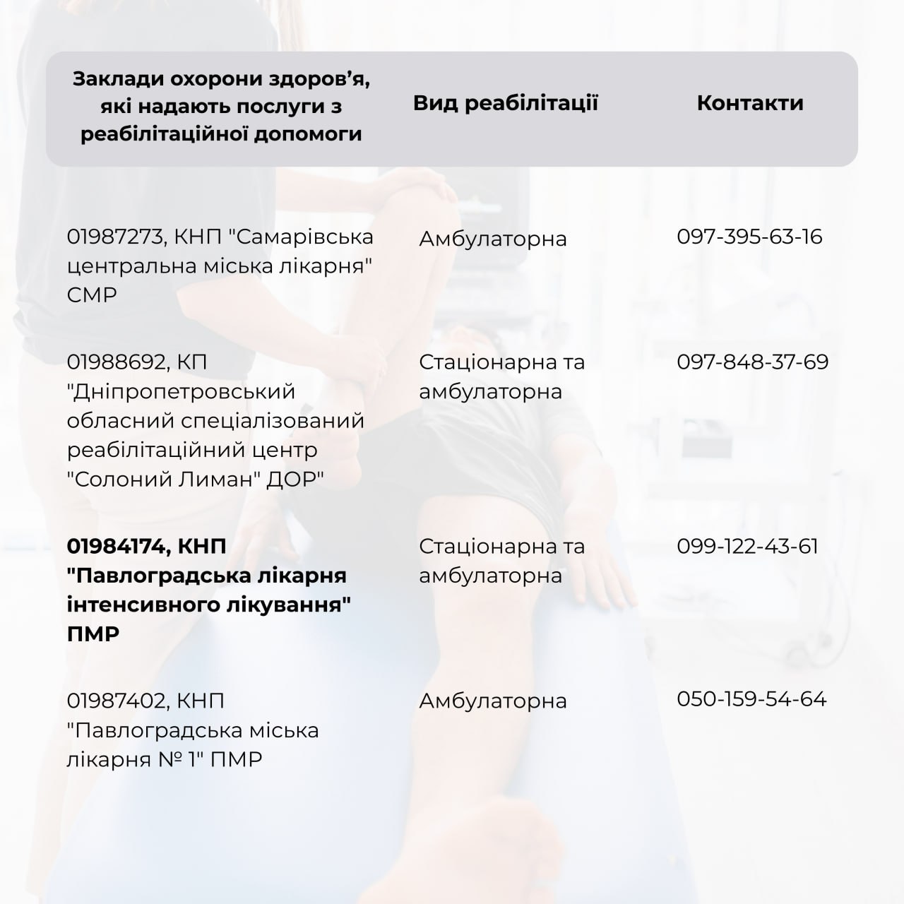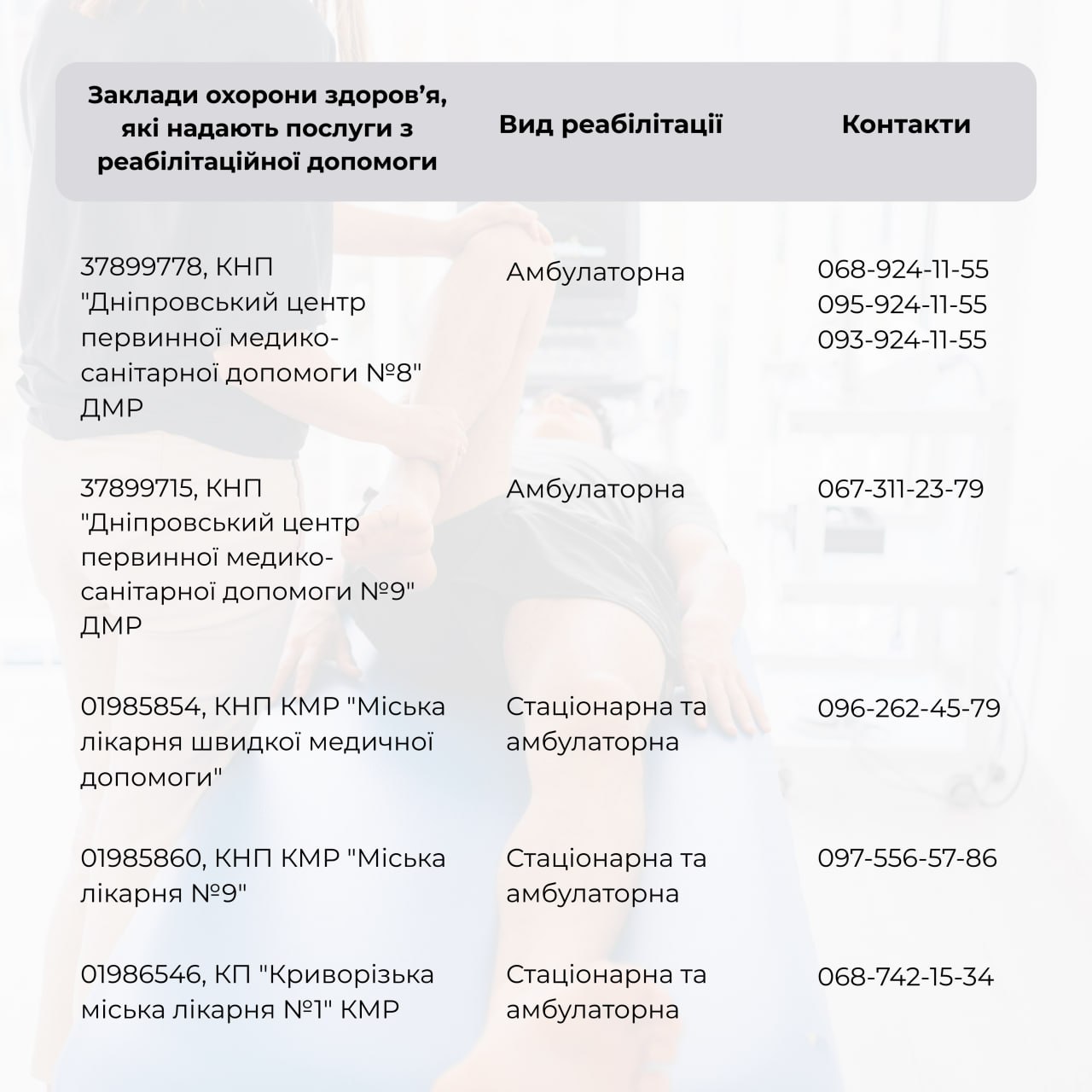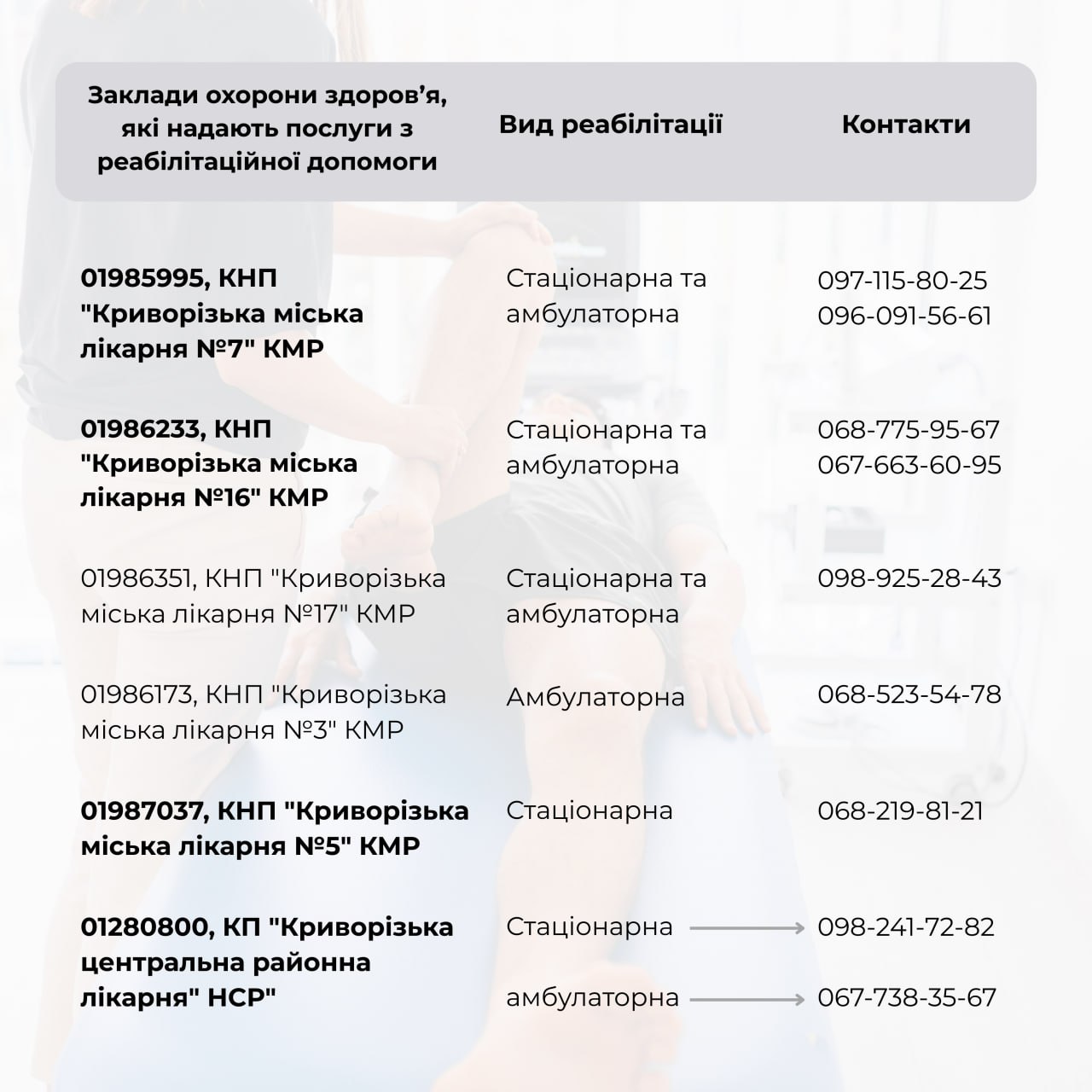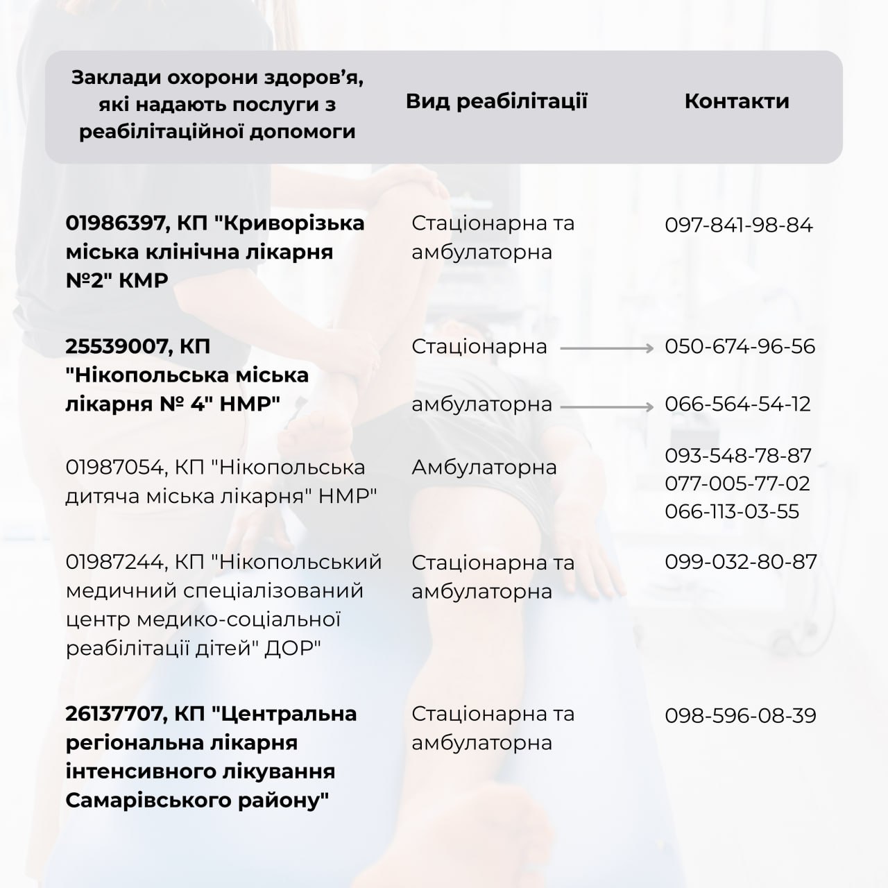 🔽 Наша громада прагне забезпечити своїх мешканців повною інформацією про доступні медичні послуги. Нижче, на зображеннях, представлено детальний Перелік закладів охорони здоров’я Дніпропетровщини, де пацієнти можуть отримати необхідні реабілітаційні послуги. Цей перелік допоможе вам зорієнтуватися та обрати найзручніший для вас заклад. Важливо пам’ятати, що своєчасне звернення за реабілітаційною допомогою може суттєво прискорити процес одужання та повернути вам активний спосіб життя. Ми наголошуємо на важливості профілактики та ранньої діагностики, але у разі потреби, знайте, де шукати допомогу. Реабілітація – це не лише про відновлення фізичних функцій, але й про психологічну підтримку та повернення до повноцінного життя.