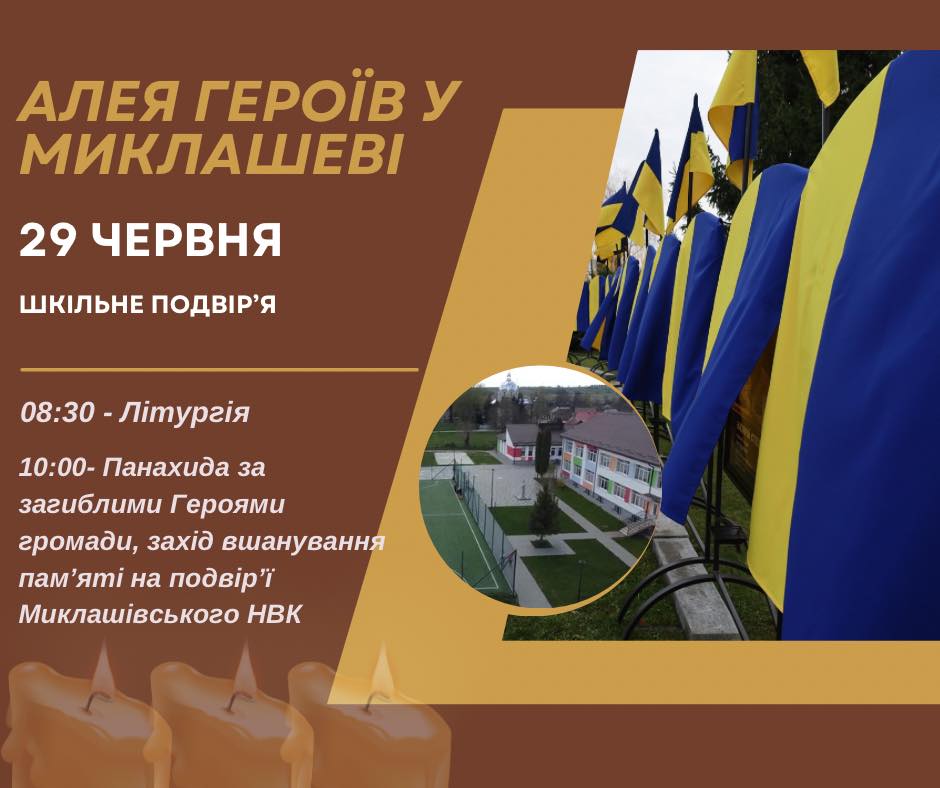 Громадо, вже цієї неділі, 29 червня, Алею Героїв розташують у Миклашеві!