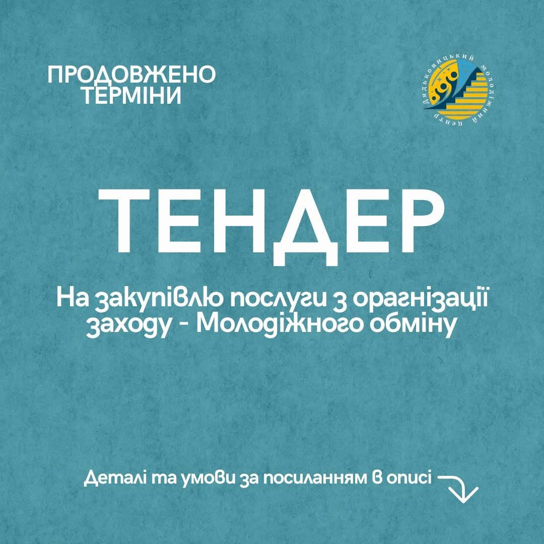 Громадська організація «Дядьковицький молодіжний центр» в межах програми залучення молоді до відновлення України шляхом реалізації молодіжних обмінів “ВідНОВА:UA” у селі Милостів Дядьковицької територіальної громади Рівненської області” оголошує проведення тендеру на закупівлю послуги з організації заходу – Молодіжного обміну.