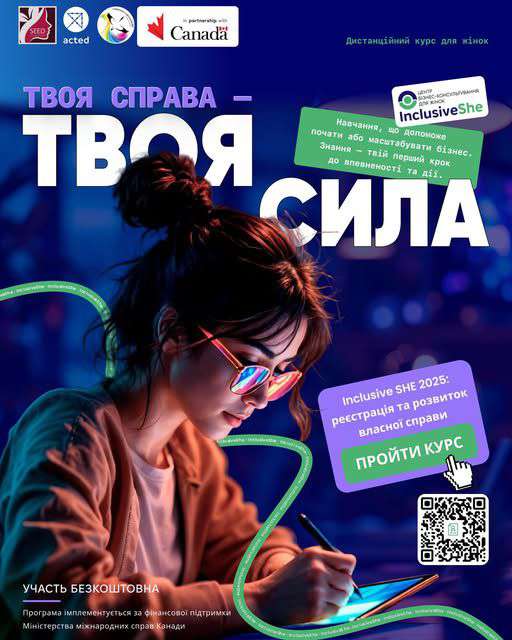 Не втрачайте можливість отримати якісну освіту та підтримку у сфері підприємництва. Реєструйтеся на безкоштовний онлайн-курс “Inclusive SHE 2025” вже сьогодні та зробіть перший крок до успішної власної справи!