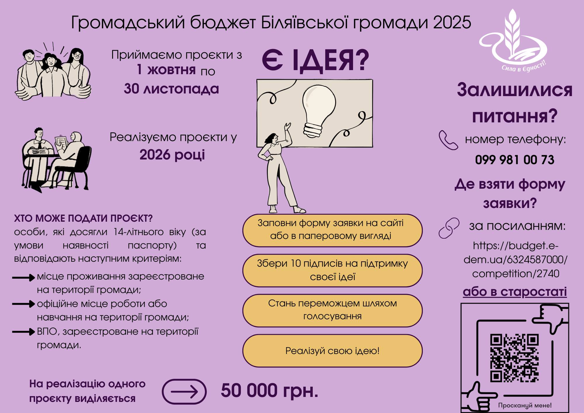 !! **Важлива інформація:** Автором проєкту може стати будь-яка особа, яка досягла 14-річного віку та має паспорт. Це відкриває двері для активної молоді та всіх небайдужих громадян.