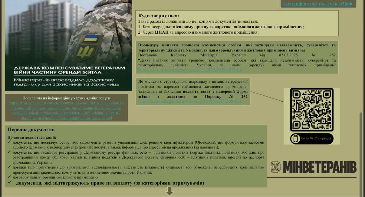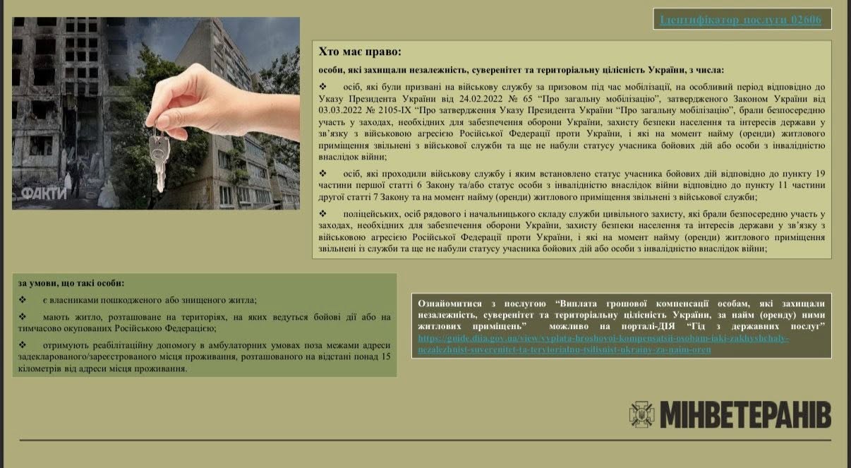 Грошова компенсація за оренду житла для тих, хто захищав Україну Мінветеранів з…
