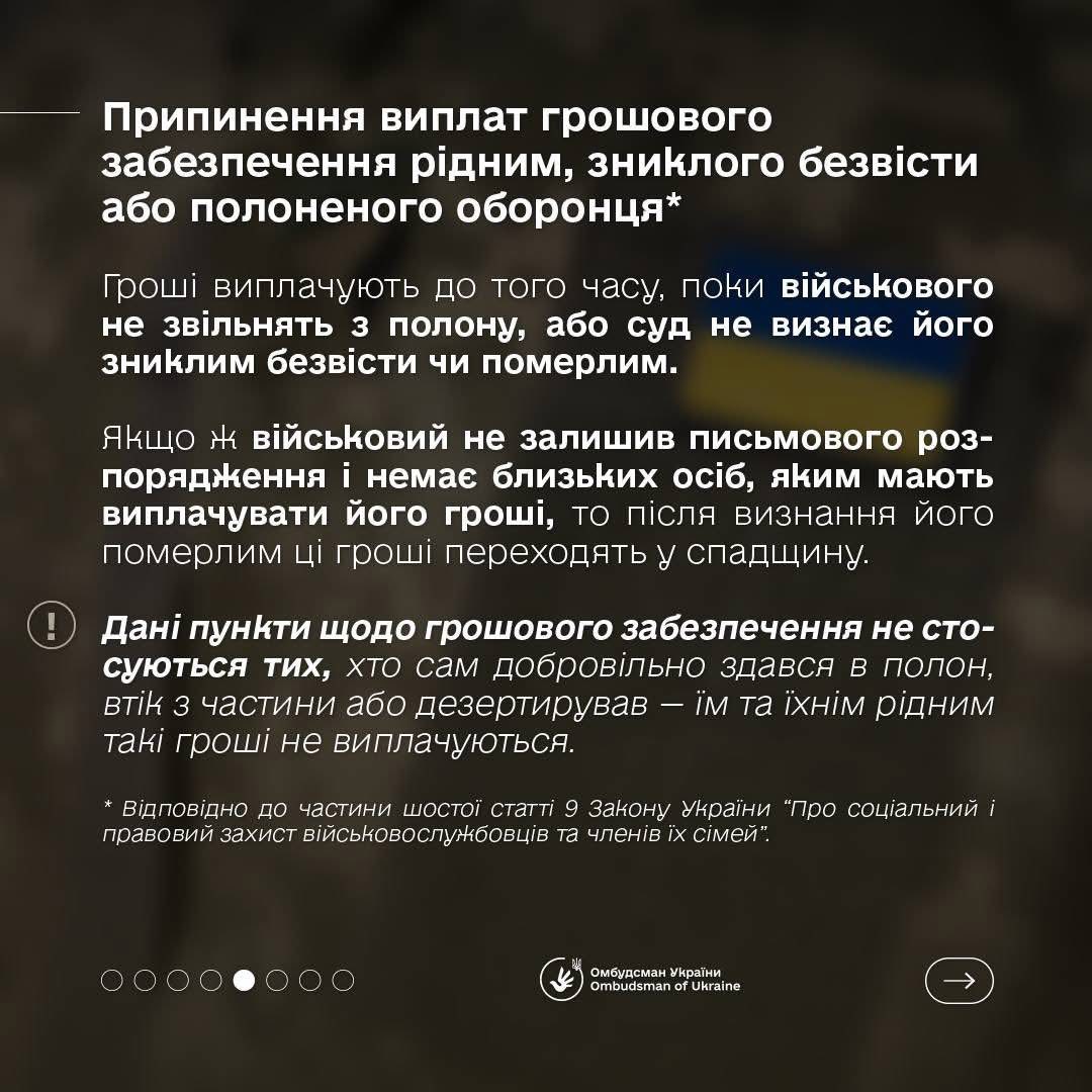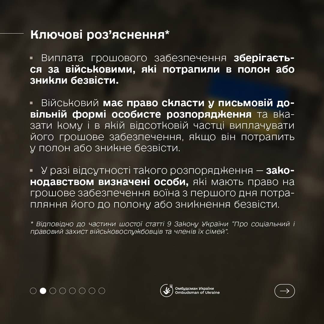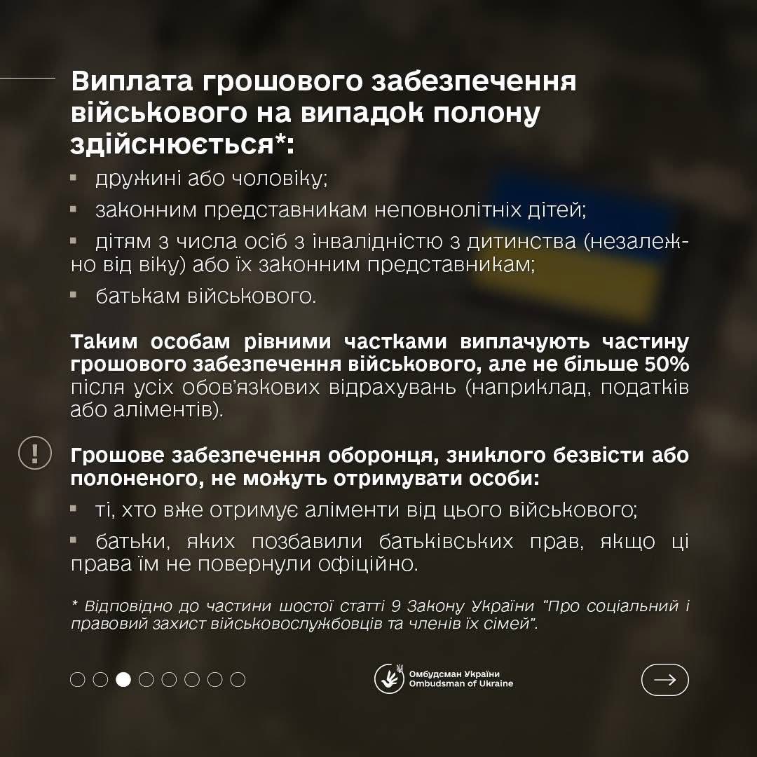 Грошове забезпечення для родин полонених та зниклих безвісти