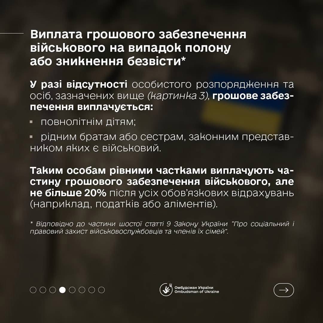 Грошове забезпечення для рідних військовополонених та зниклих безвісти: Порядок та особливості виплат