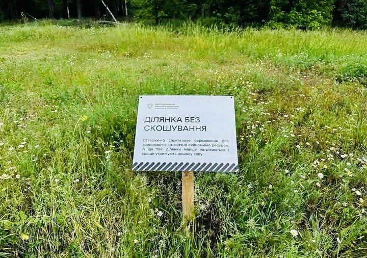 На ділянках, де не відбувається скошування, встановлено спеціальні інформаційні таблички. Скошування трави на цих територіях призупинено до кінця сезону, щоб дати природі можливість розвиватися у природний спосіб. Це дозволяє рослинам вільно рости та підтримує екосистему, сприяючи збереженню комах та інших живих організмів.