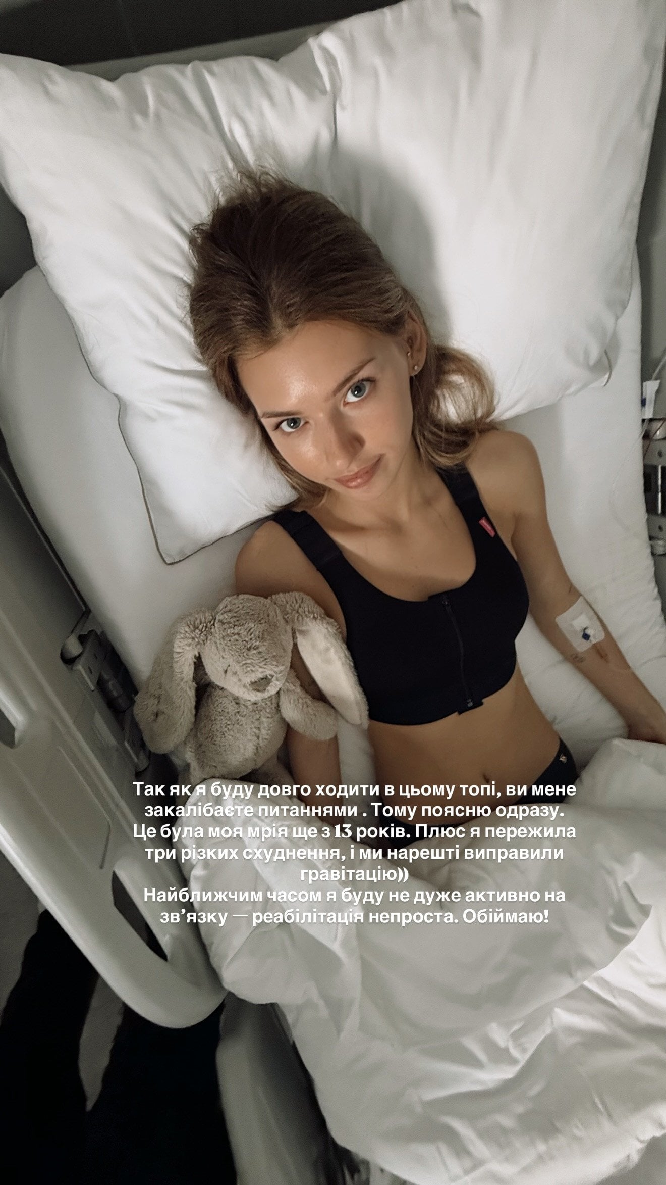 “Це було моєю мрією ще з 13 років. Плюс я пережила три різкі схуднення, і ми нарешті виправили гравітацію. Найближчим часом я буду не дуже активно на звʼязку — реабілітація непроста”, — зізналася Майорова, деталізуючи причини свого рішення та попереджаючи про тимчасову відсутність активності в соцмережах через процес відновлення після операції на грудях.