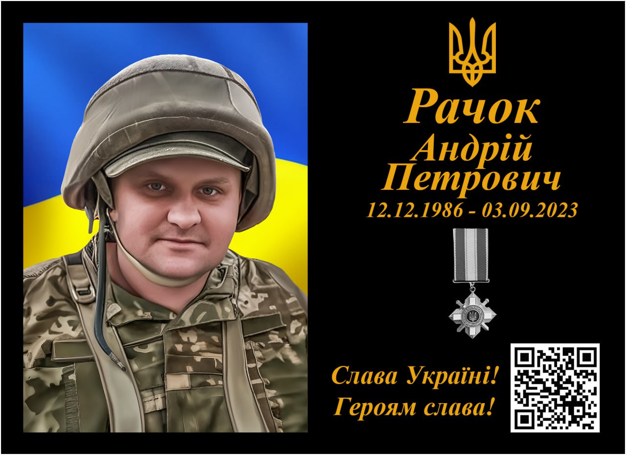 Два роки тому, 3 вересня 2023 року, трагічно обірвалося життя нашого земляка, Андрія Петровича Рачка, 1986 року народження. Андрій загинув від отриманих поранень під час виконання бойового завдання поблизу населеного пункту Кліщіївка, що на Бахмутщині Донецької області. Його життя забрала стрілянина з противником, яка стала останнім випробуванням для хороброго воїна.