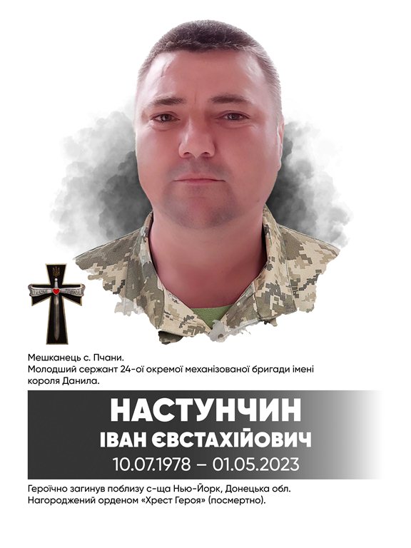 Два роки тому, 6 травня 2023 року, в селі Пчани Жидачівської громади прощалися із Захисником України Іваном Настунчиним – молодшим сержантом 24-ї окремої механізованої бригади імені короля Данила, який загинув 1 травня 2023 року під час виконання бойового завдання поблизу населеного пункту Нью-Йорк Донецької області.