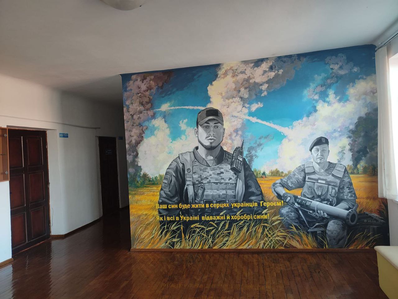 🪖Стінопис, що зображає Аль Шамі Фареса та Василя Лісовського, прикрашає шкільний коридор ліцею №1 у Рівному. Обидва захисники України були випускниками цього навчального закладу. 🧑🏫Під портретами воїнів розміщено поетичні рядки з пісні Фареса. Мурал став місцем пам’яті та шани, де кожен може вшанувати героїв, що віддали своє життя за Україну. Створення муралу – це важливий крок у збереженні пам’яті про героїв, які віддали своє життя за свободу та незалежність України. Він слугуватиме нагадуванням про їхній подвиг для майбутніх поколінь. Мешканці Рівненщини пишаються своїми героями, і мурал є символом цієї гордості та вдячності. Це місце, де можна зупинитися, подумати про ціну миру та віддати шану тим, хто його захищав. Пам’ять про Аль Шамі Фареса та Василя Лісовського назавжди залишиться в серцях рівнян. Мурал є свідченням того, що їхній подвиг ніколи не буде забутий, і їхні імена будуть жити вічно. Створення таких місць пам’яті є надзвичайно важливим для виховання патріотизму та поваги до історії України. Він надихатиме молоде покоління бути гідними продовжувачами справи героїв, які віддали своє життя за Батьківщину. Мурал на честь героїв Рівненщини – це символ єдності, пам’яті та віри у світле майбутнє України.