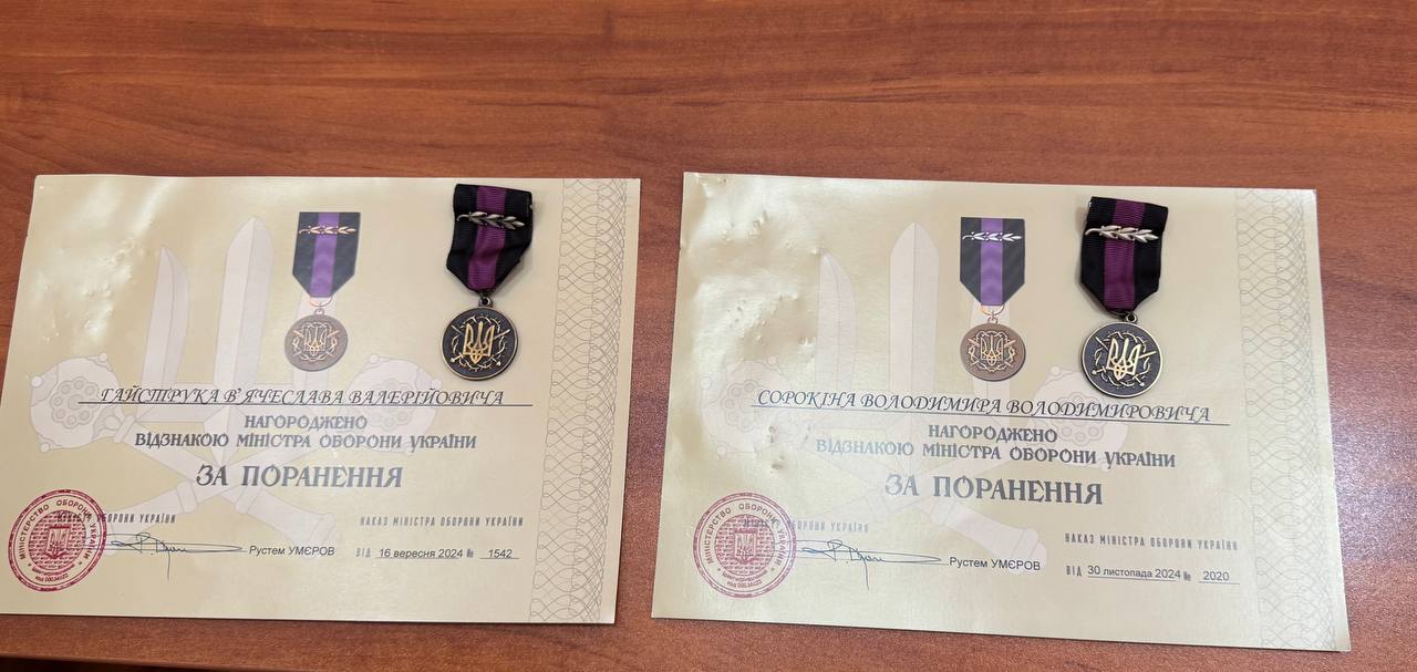 За мужність, стійкість і відданість військовій присязі, проявлені в умовах ведення бойових дій, воїни були нагороджені відзнаками Міністра оборони України «За поранення».