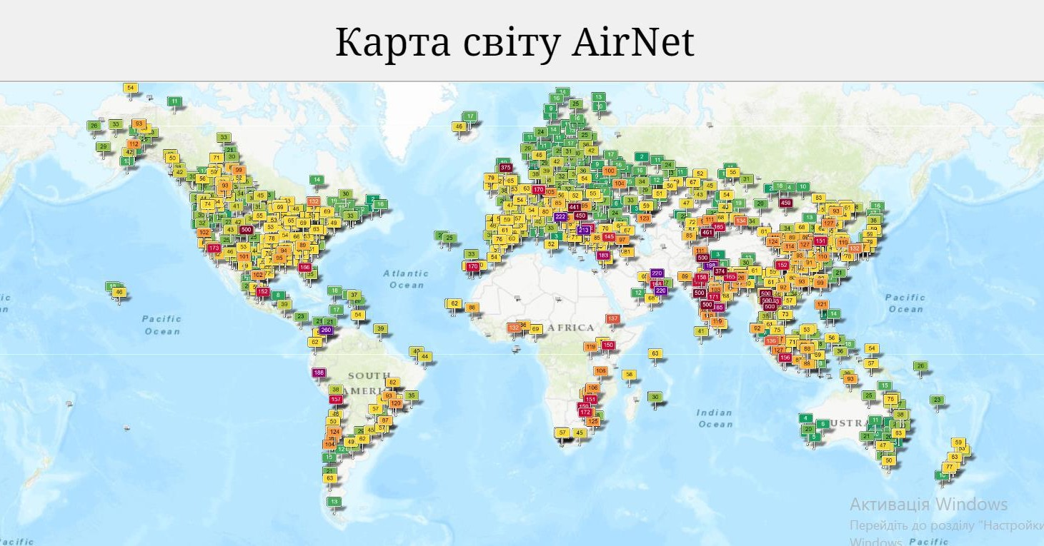 Якість повітря Львів: державні станції на світовій мапі AQICN