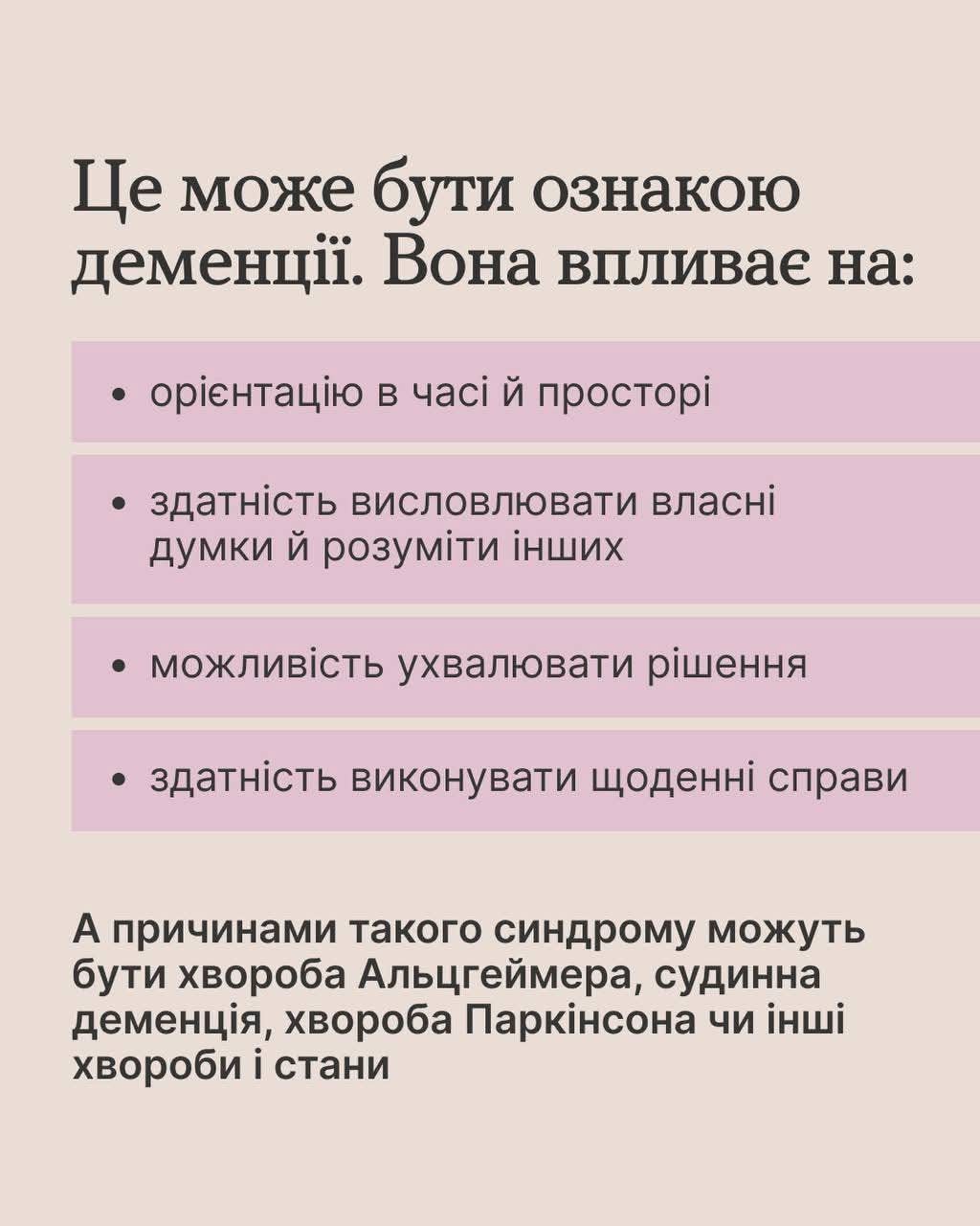### Ключові Ознаки, що Можуть Вказувати на Деменцію: