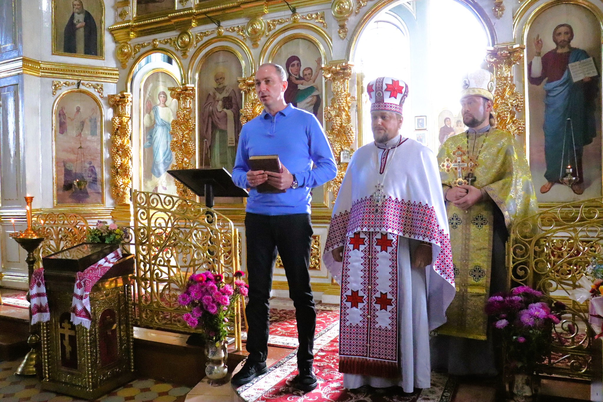 У молебні взяли участь високоповажні гості: голова Сумської обласної державної адміністрації – начальник обласної військової адміністрації Олег Григоров, Тростянецький міський голова Юрій Бова, керівний склад Тростянецької міської ради, а також віряни – небайдужі мешканці міста.