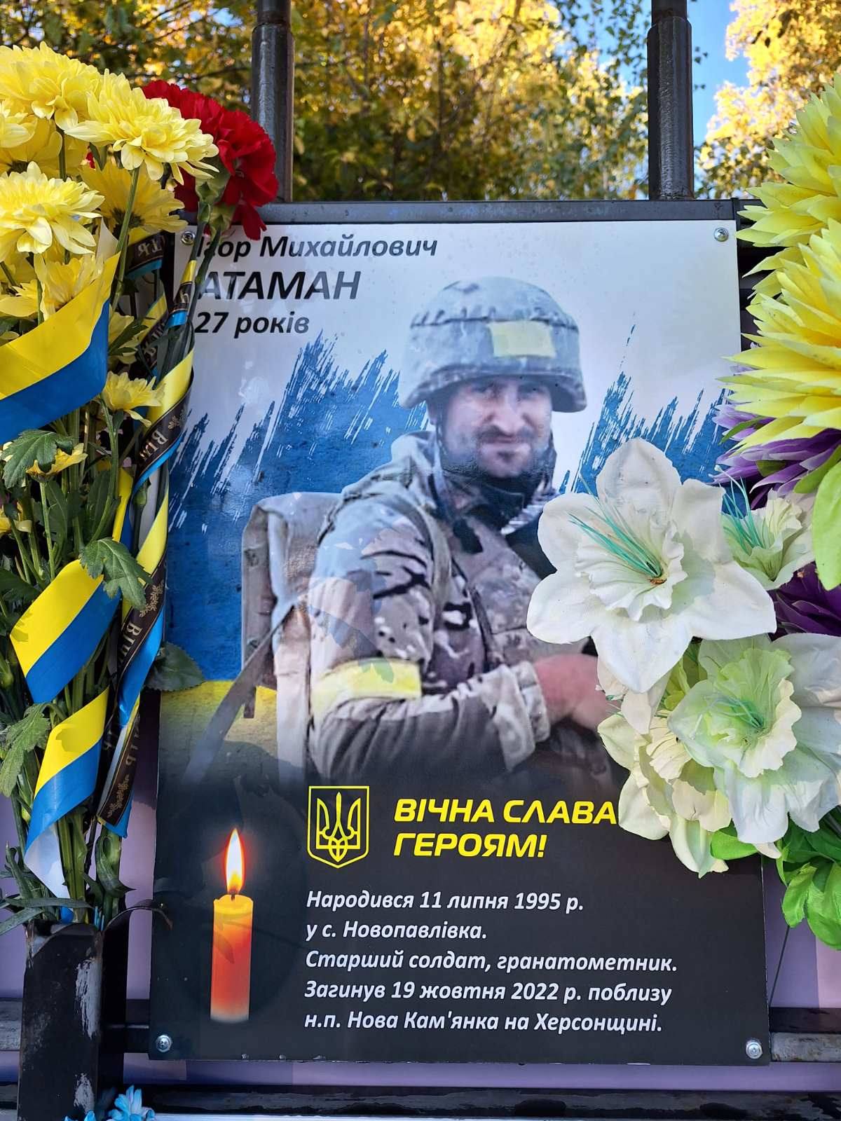 Сьогодні, 19 жовтня, наші серця та молитви звернені до новопавлівця, Героя України – Атамана Ігоря Михайловича, чиє життя обірвалося 19.10.2022 року. Його подвиг навіки закарбувався у пам’яті громади.