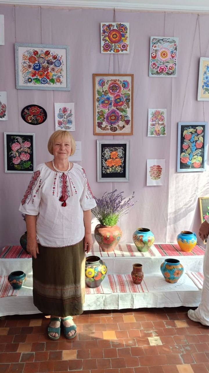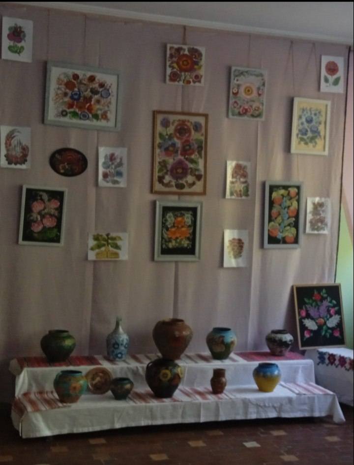🎨 У фойє діяла виставка декоративного народного мистецтва. Свої роботи — картини та мальовки у Петриківському, Самчиківському та Київському розписах — представила уродженка села Пашківка, талановита майстриня Санькова Марія Василівна.