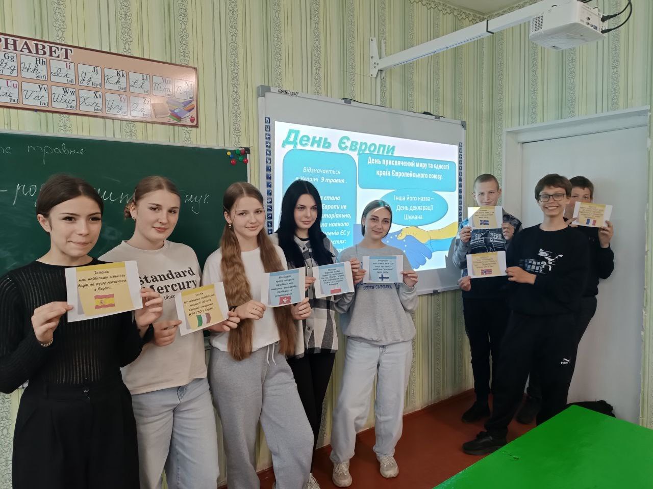 Учні 5–9 класів взяли участь у виховних годинах, присвячених європейським цінностям, культурі та історії. Під час цих занять обговорювалися важливі аспекти європейської інтеграції, роль України в європейському просторі та внесок європейських країн у світову культуру. Особлива увага приділялася таким цінностям, як демократія, права людини, толерантність та культурне різноманіття. День Європи допоміг учням краще зрозуміти важливість європейських цінностей.