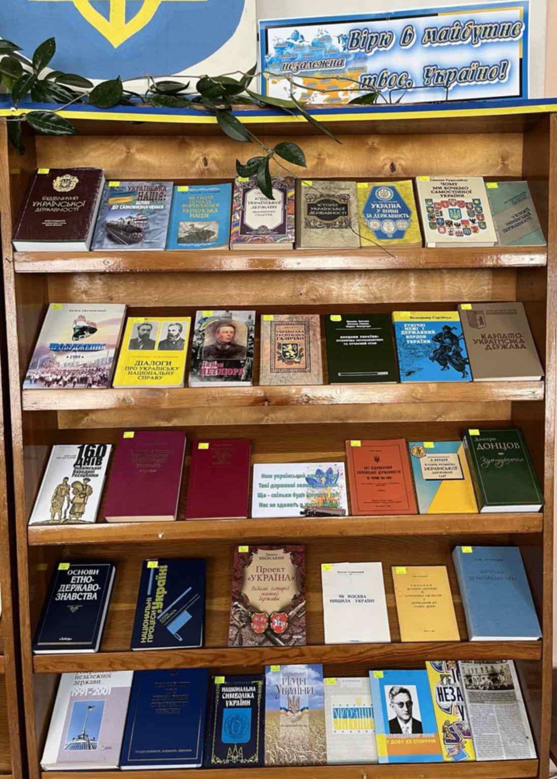 Окрім цього, у читальній залі бібліотеки функціонує ще одна важлива книжкова виставка – «Вірю в майбутнє твоє, Україно!». Ця експозиція розкриває ключові події, які сформували історію творення та становлення української державності, а також висвітлює діяльність її видатних творців. Відвідувачі виставки матимуть унікальну можливість ознайомитися з літературою про Україну, її героїчний народ та його нелегкий шлях до здобуття самостійності. Виставка розповідає про ключові події нашої історії, легендарних особистостей та видатних українців минулого, які стали справжньою гордістю України. Запрошуємо всіх зацікавлених користувачів та відвідувачів книгозбірні до перегляду цих важливих експозицій. Представлені на виставках видання переконливо стверджують головну істину: Україна була, є і завжди буде єдиною, незалежною та суверенною державою.