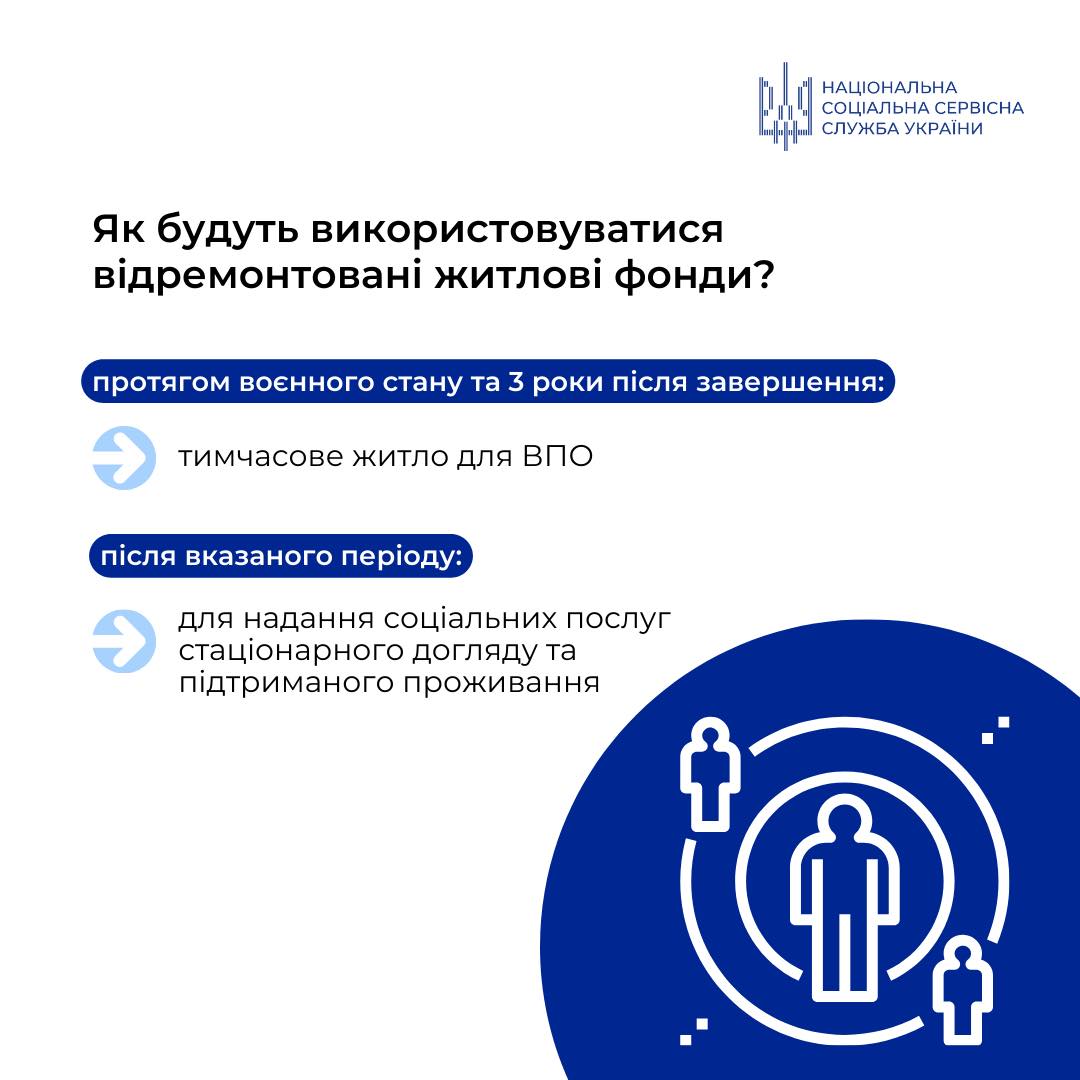 Особлива увага в рамках цієї програми приділяється забезпеченню комфортних умов проживання для всіх категорій ВПО. Зазначається, що понад 20% від загального обсягу реконструйованого житлового фонду будуть спеціально обладнані для потреб маломобільних груп населення. Це включає створення безбар’єрного середовища та адаптацію приміщень для людей з інвалідністю та літніх осіб, забезпечуючи їх гідне та безпечне проживання.