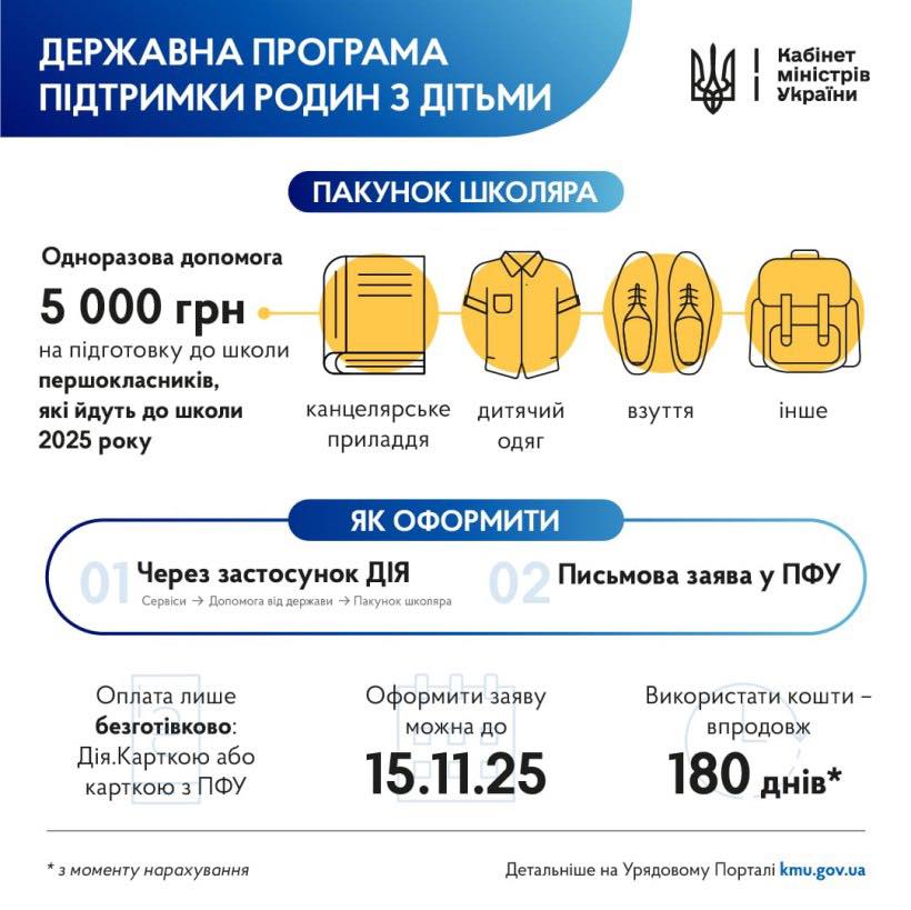 Пакунок школяра: 5000 грн допомоги першокласникам 2025