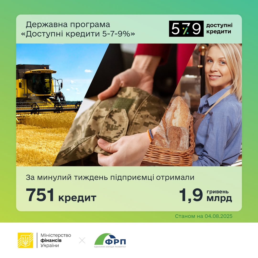 ✅ за минулий тиждень було надано 751 пільговий кредит на загальну суму 1,9 млрд грн;