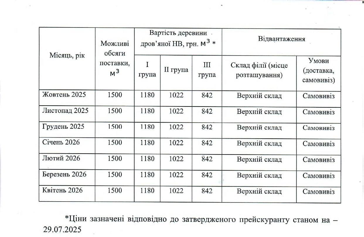 З метою забезпечення сталого проходження опалювального сезону 2025/2026 років, філія «Столичний лісовий офіс» ДП «Ліси України» повідомляє про можливість придбання деревини дров’яної непромислового використання для потреб населення та об’єктів соціальної інфраструктури територіальних громад, які використовують тверде паливо для опалення.