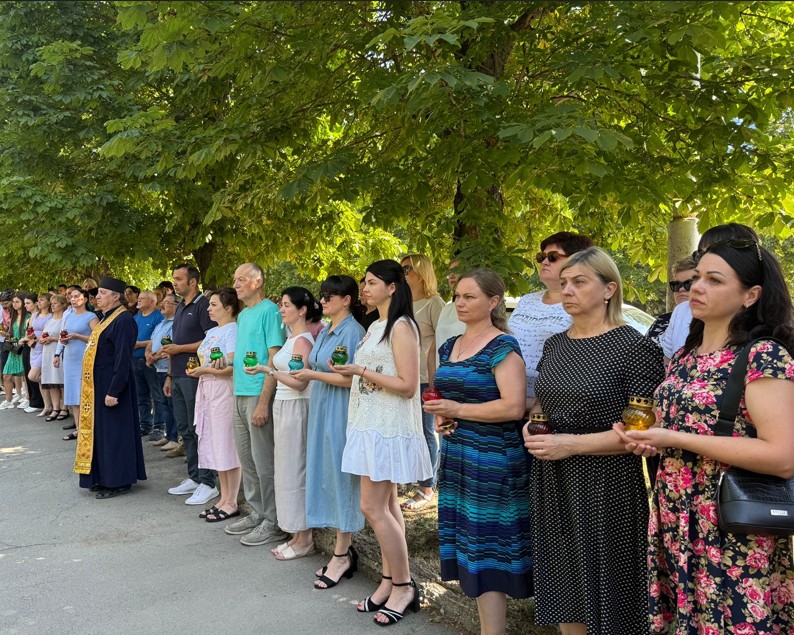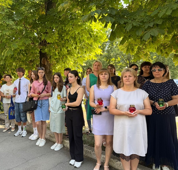 Учасники заходу зібралися біля Дошки пам’яті Захисників України у селищі Солоне, щоб запалити лампадки — як вияв вічної шани та вдячності тим, хто віддав життя за наше майбутнє, свободу та державність.