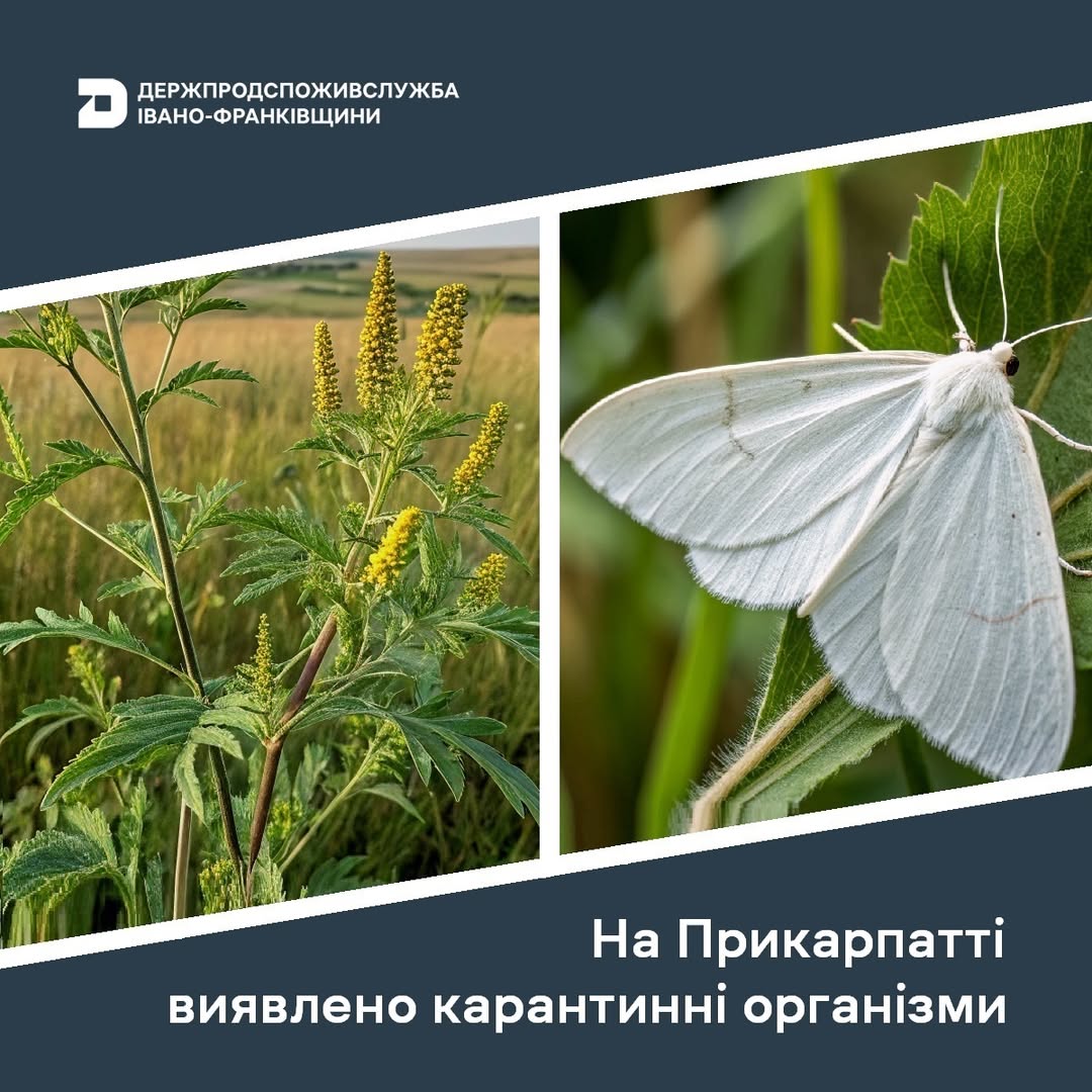 Державні фітосанітарні інспектори Прикарпаття виявили небезпечних шкідників та бур’яни на сільськогосподарських угіддях. Під час моніторингу було знайдено американського білого метелика (Hyphantria cunea Drury) та амброзію полинолисту (Ambrosia artemisiifolia L.).