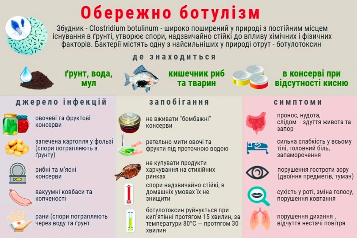 * У випадку виявлення загиблої риби, категорично заборонено її збирати та вживати (солити чи в’ялити). Це може призвести до захворювання на ботулізм. Забруднення водойм збільшує ризик захворювань риб.