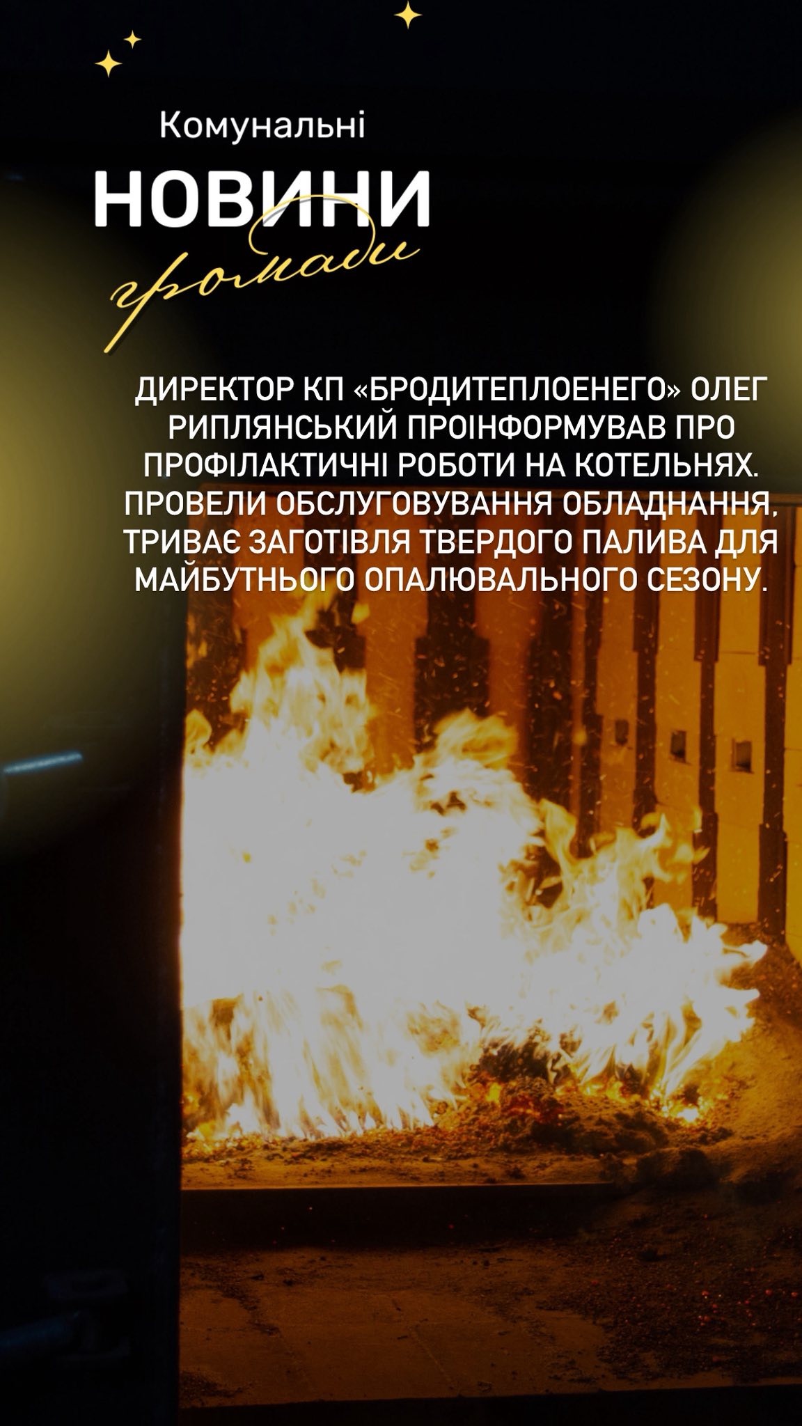 🔵 Директор КП «Бродитеплоенего» Олег Риплянський проінформував про профілактичні роботи на котельнях. Провели обслуговування обладнання, триває заготівля твердого палива для майбутнього опалювального сезону.