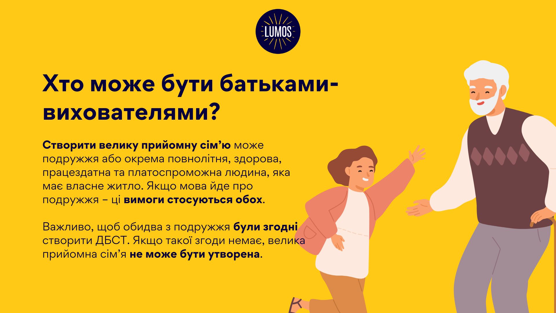 - Батьками-вихователями можуть бути подружжя або одна повнолітня особа, яка не перебуває у шлюбі.