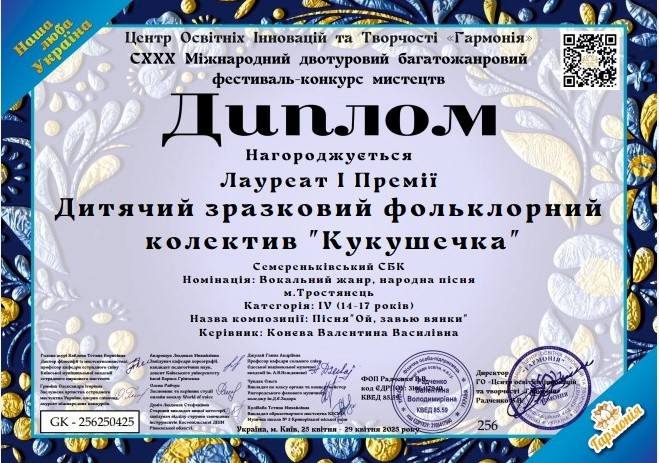 Колектив «Кукушечка» знову довів, що українська пісня, щира любов до рідного краю та наполеглива праця над власною майстерністю здатні підняти навіть маленьке село на велику висоту. Діти з Семереньок виконують народні пісні, дбайливо зберігаючи і передаючи традиції, які є справжнім серцем української культурної спадщини. Їхня перемога – це визнання таланту і наполегливості.