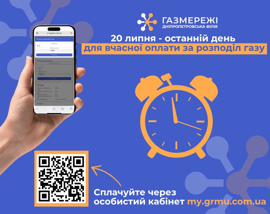 Дніпропетровська філія «Газмережі» наголошує на важливості своєчасної оплати за послуги розподілу газу, що є запорукою безаварійної роботи всієї газорозподільної системи регіону. Споживачі газу вже отримали платіжки за липень, і згідно з умовами договору, оплата має бути здійснена до 20 числа поточного місяця.