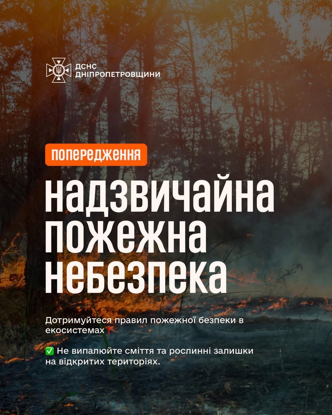 15-21 липня по території Дніпропетровської області очікується надзвичайна (V класу) пожежна небезпека.