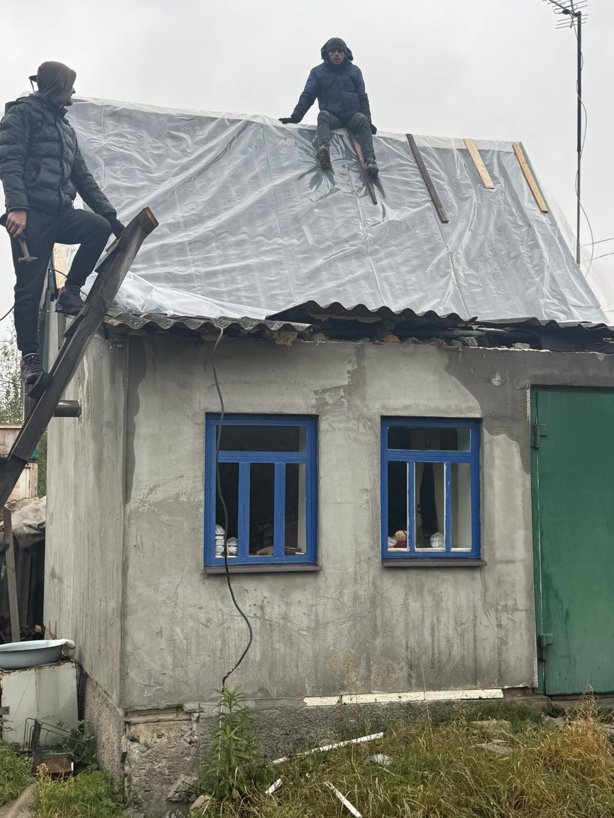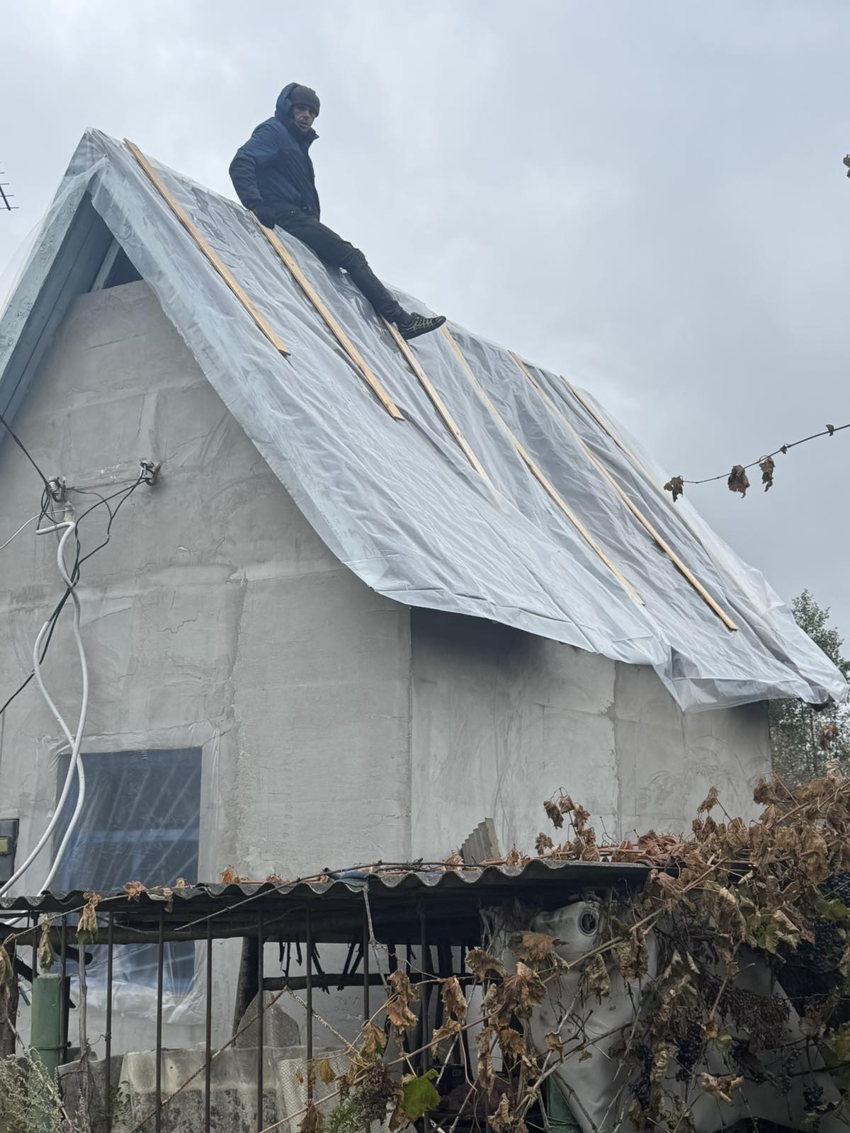 Зокрема, на одному з будинків було успішно виконано перекриття покрівлі на веранді. Під час детального обстеження було виявлено повністю зруйнований шифер, який потребував негайної заміни. 🏘️🔨 Ще в одному дворі, який опинився безпосередньо в епіцентрі вибуху, пошкоджену покрівлю тимчасово накрили міцною плівкою. Це вимушений крок, покликаний захистити оселю від опадів 🌧️, доки не буде проведена повна заміна покрівлі, адже косметичним ремонтом тут вже не обійтися. 🏚️🆘 Ситуація потребує комплексного підходу до відновлення.