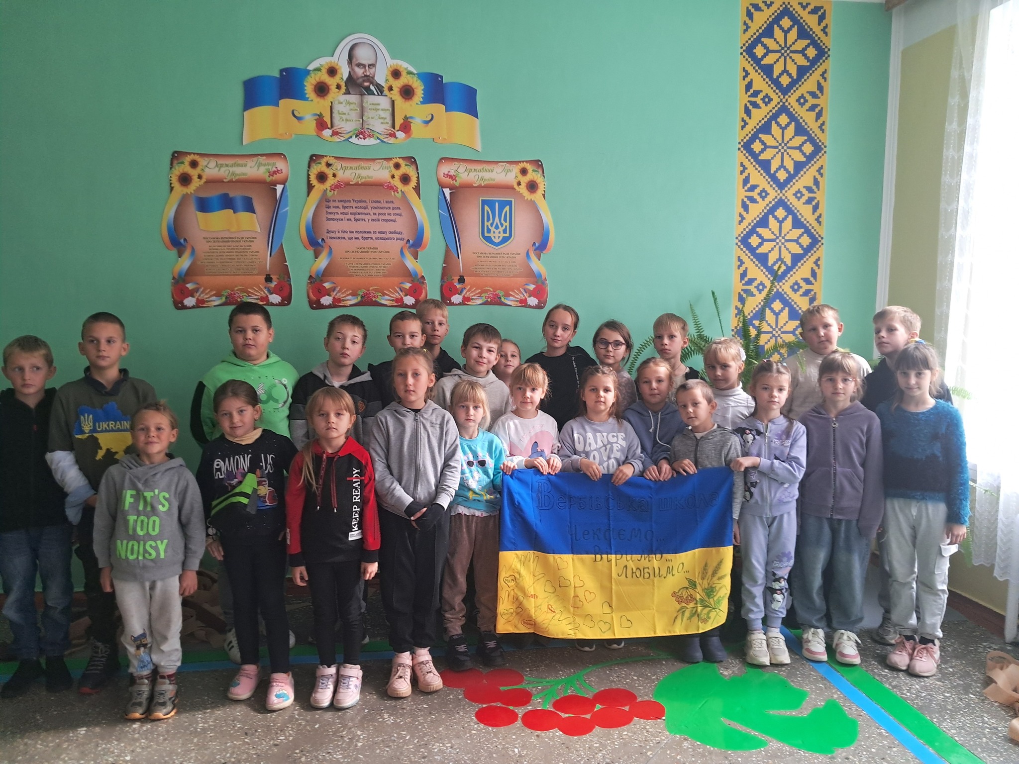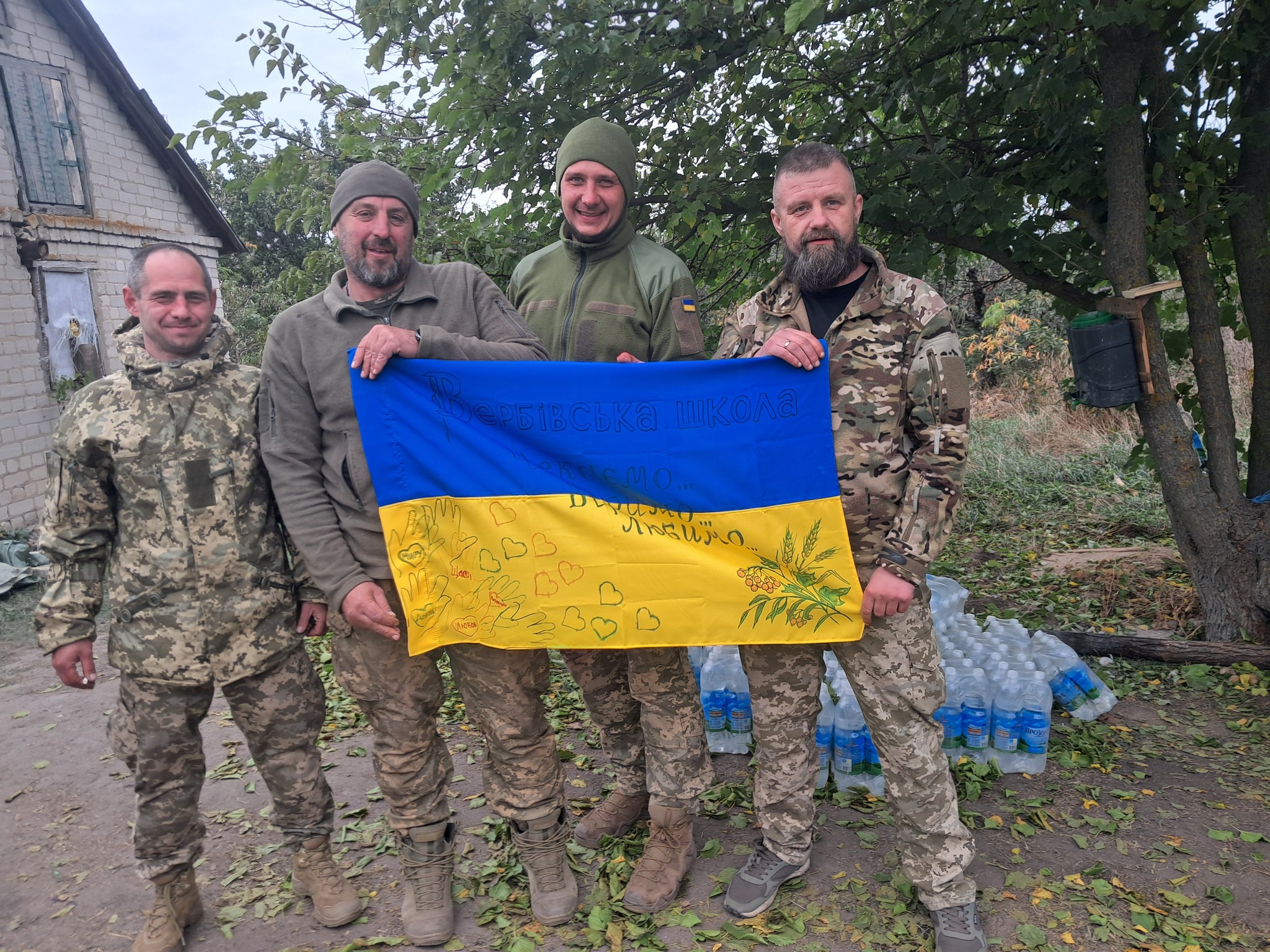 Зворушливим моментом стало вручення прапора, розписаного учнями молодших класів Вербівської філії Вільшанського ОЗЗСО I-III ступенів. Боєць серед них – Овчаров Олександр, який захищає Україну з 2014 року, також випускник цієї школи. Його очі, як і очі інших бійців, зволожилися від емоцій. Один з бійців приніс смачні солодощі, попросивши обов’язково передати їх дітям, а також вручив чистий прапор для нових розписів і побажань від наших захисників.